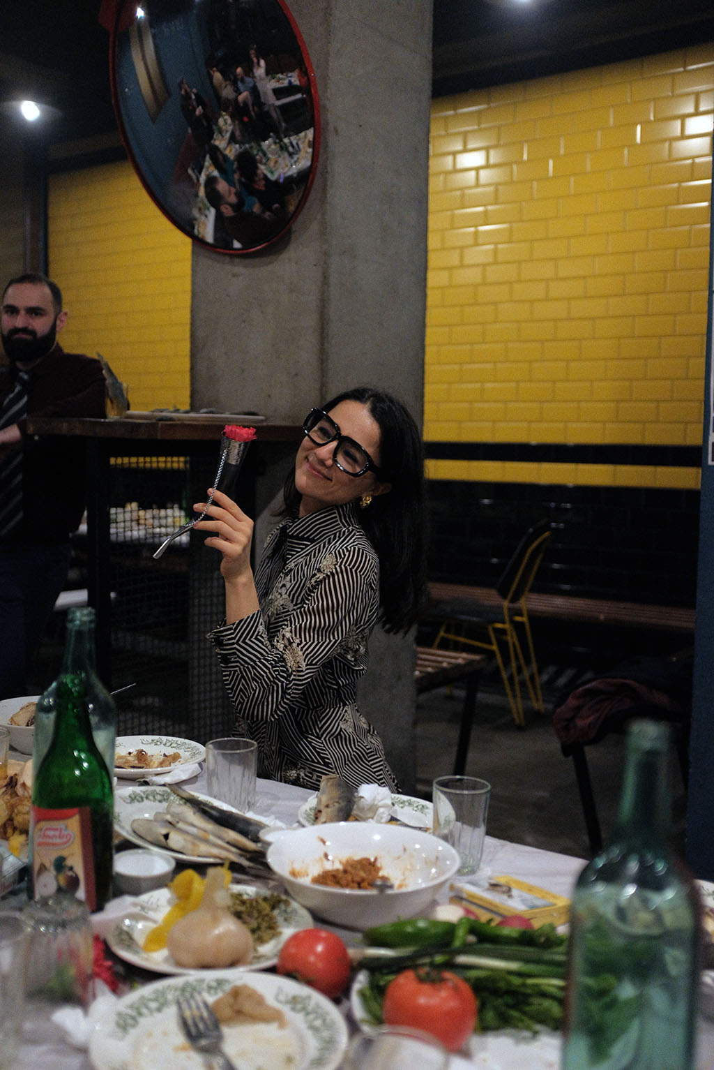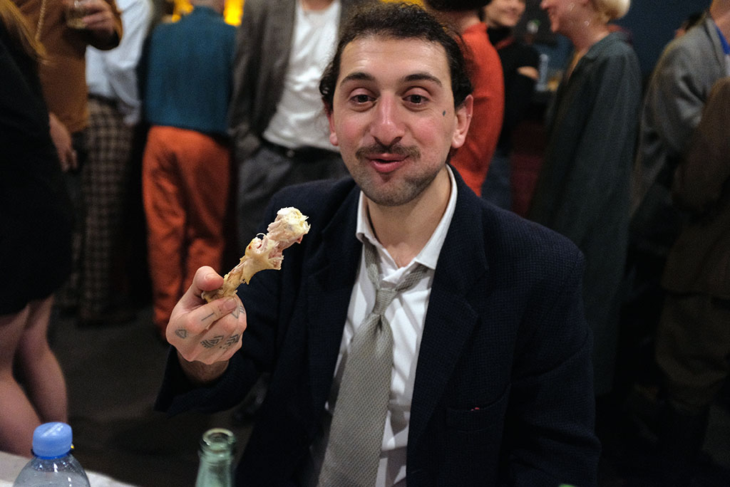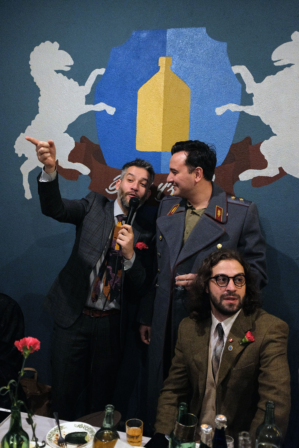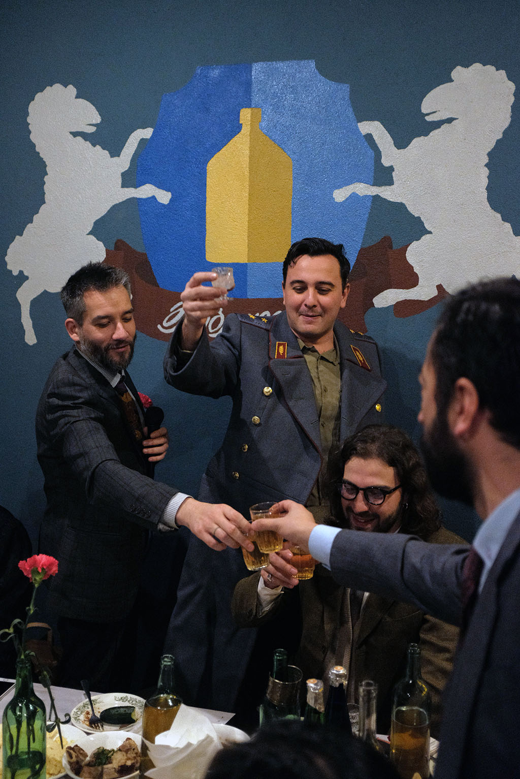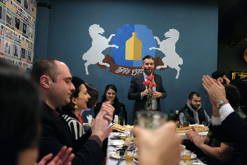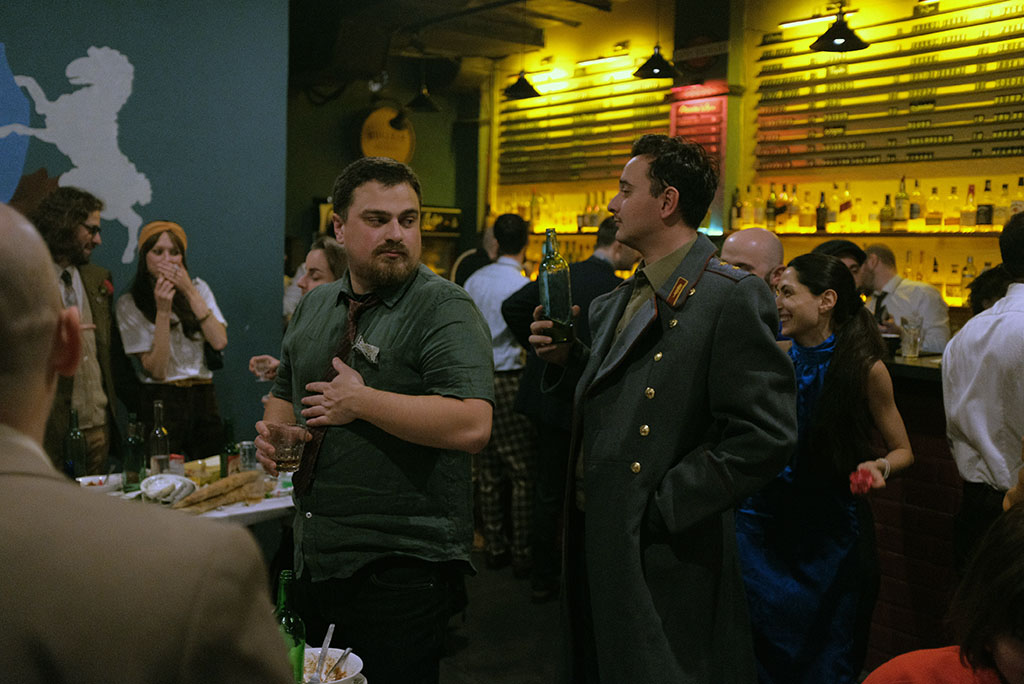სუფრაზე ბევრი შავი ხიზილალა, ქარხნის ცუდი ღვინო, მოხარშული დედალი, ქაღალდგადაკრული უზარმაზარი მაგიდები და მუზიკანტების დასტაც შემორჩა მეხსიერებას.
