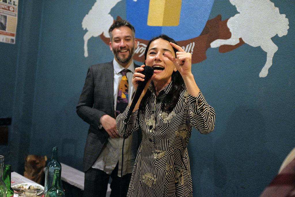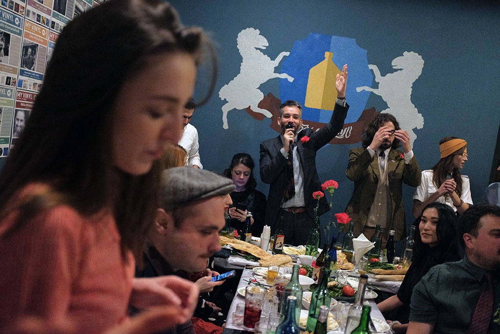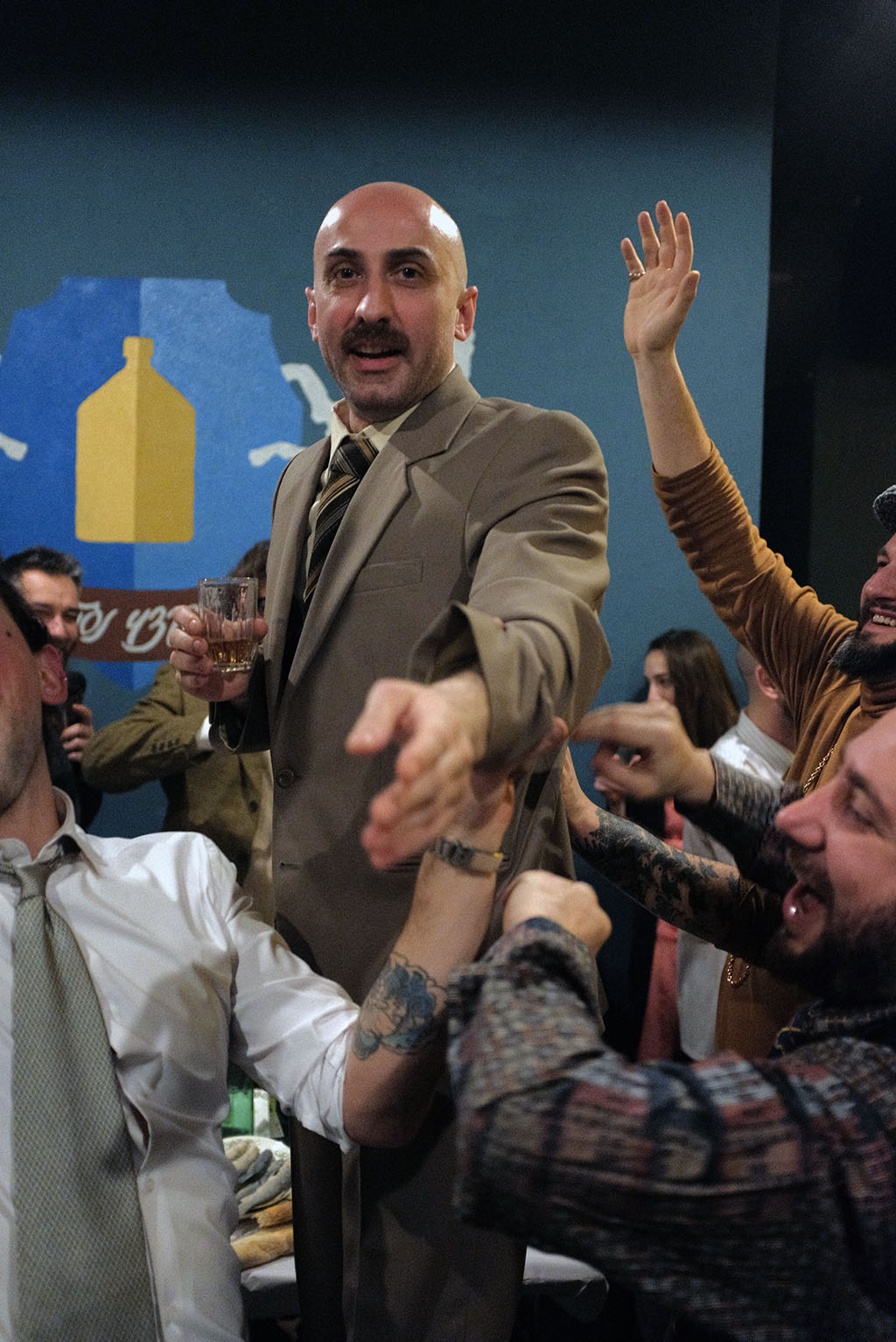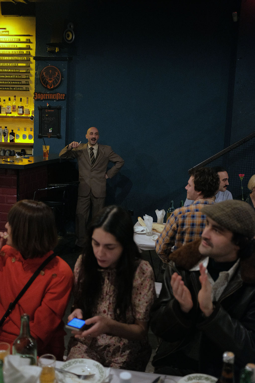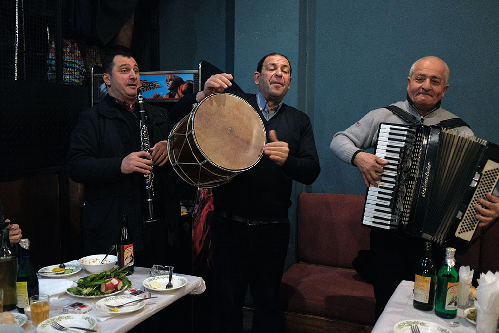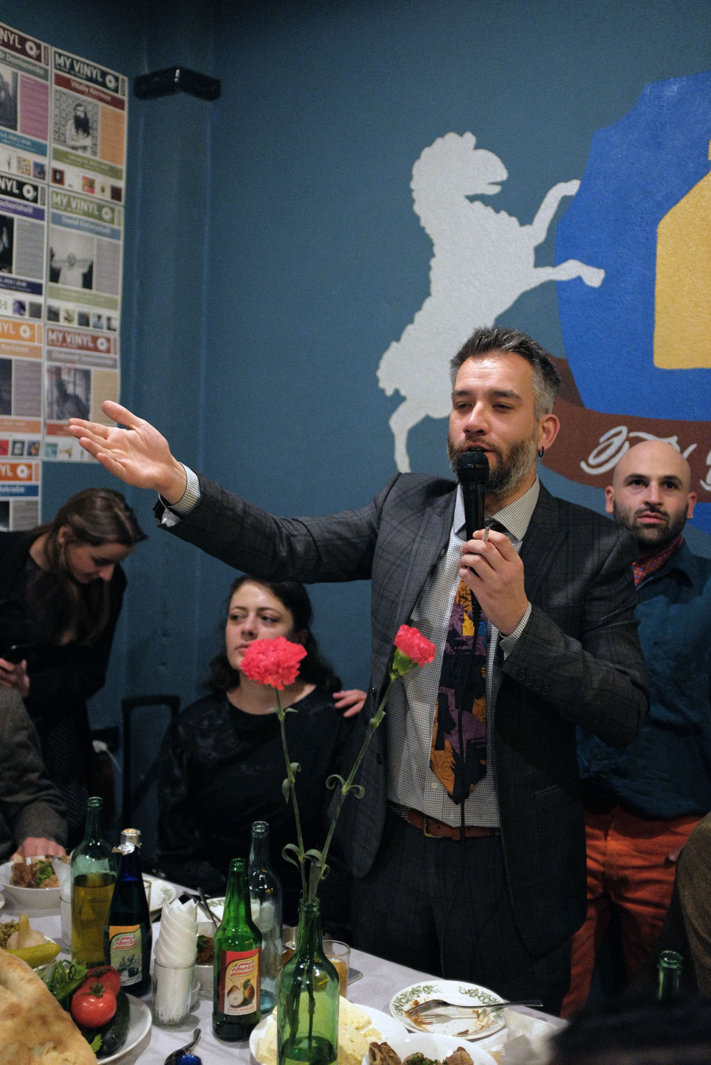 სუფრაზე ბევრი შავი ხიზილალა, ქარხნის ცუდი ღვინო, მოხარშული დედალი, ქაღალდგადაკრული უზარმაზარი მაგიდები და მუზიკანტების დასტაც შემორჩა მეხსიერებას.