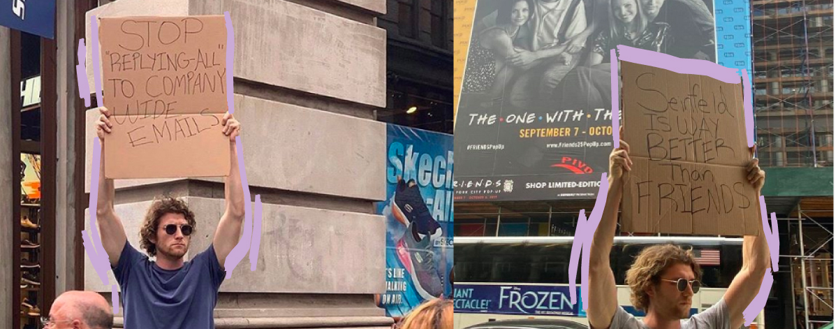 2019 წლის ოქტომბერში სეთ ფილიპსი და Jerry Media-ს დამფუძნებელი ელიოტ ტებელე ნიუ-იორკის სოჰოში გავიდნენ და ხელში ეჭირათ მუყაოს ტრანსპარანტი მარტივი საპროტესტო წარწერით: “ნუ პასუხობთ კომპანიის საერთო მეილებს Reply-All-ით.” (Stop replying-all to company-wide emails) რაც გასაგებია.