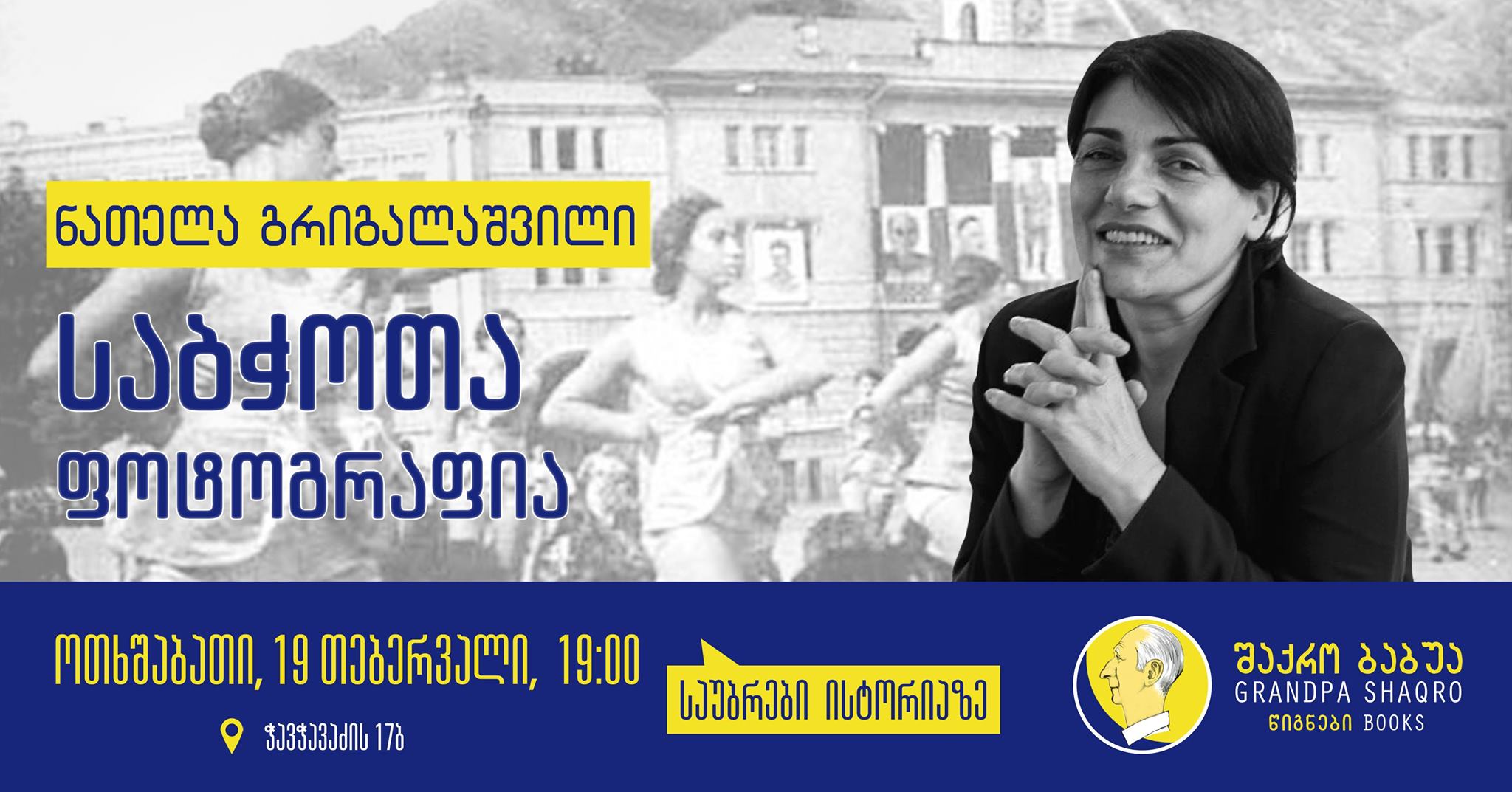 ვისაც ფოტოგრაფია, ისტორია და მასთან დაკავშირებული საინტერესო ამბების მოსმენა გიყვართ, დამოუკიდებელი ფოტოგრაფი ნათელა გრიგალაშვილი „საბჭოთა ფოტოგრაფიაზე” გესაუბრებათ. ნათელა გრიგალაშვილი სხვადასხვა სოციალურ თემაზე მუშაობს და მისი ნამუშევრები კარგად გამოხატავს იმ ემოციას, რასაც ატარებს. ფოტოგრაფი წიგნის მაღაზიაში „შაქრო ბაბუა“ გიმასპინძლებთ და ფოტოგრაფიაზე საბჭოთა კავშირის გავლენის შესახებ მოგიყვებათ.