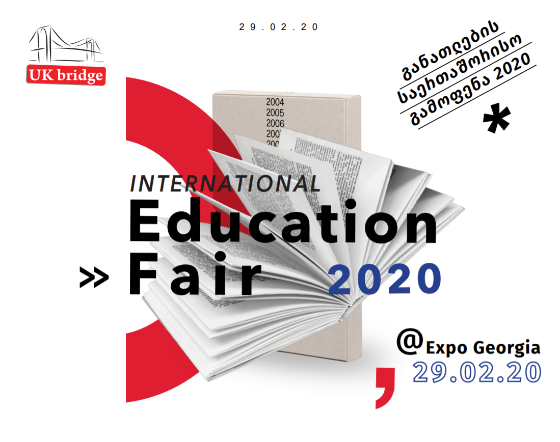 29 თებერვალს, 11:00 დან 18:00 საათამდე, საგანმანათლებლო სააგენტო UK-Bridge განათლების საერთაშორისო გამოფენა 2020-ს უმასპინძლებს. გამოფენა, რომელიც საქართველოში უკვე მეათედ გაიმართება, წელს ახალ ლოკაციაზე, ექსპო–ჯორჯიას მე-6 პავილიონში ჩატარდება. გამოფენაზე მაღალი დონის უნივერსიტეტები, კოლეჯები, სკოლა–პანსიონები და ენის სკოლები იქნებიან წარმოდგენილნი.