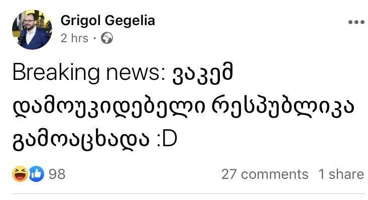 ონლაინ სამყაროში კი, როგორც მოსალოდნელი იყო, ნიუსფიდი წალეკა იუმორის ცუნამიმ, რომლის მცირე ნაწილსაც მოცემულ ნაკრებში გთავაზობთ.