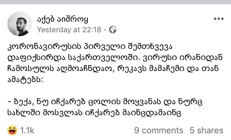 იუმორი, როგორც სტრესტთან გამკლავების საშუალება – კორონავირუსის პირველი ღამის სტატუსები
