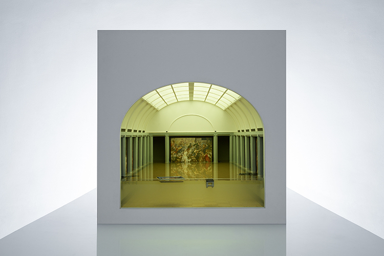 მახვილგონივრულია, მაკეტი იძირება, მუდმივად სველდება და შრება. ეს არის საშინელება, მუდმივი მარყუჟი. გაბუნიამ, რომელიც ასევე არქიტექტორია, უკვე შექმნა ლუვრის მედიჩების გალერეა, რომელიც რუბენსის მარია მედიჩის ნახატების ციკლს მასპინძლობს 2016 წლის სერიის ფარგლებში (შეყავი თავი გალერეაში). სიურეალისტურ ფოტოებზე ცნობილი სახელოვნებო სივრცე გიგანტური თავით ირღვევა, რომელიც ექსპოზიციებში იყურება.