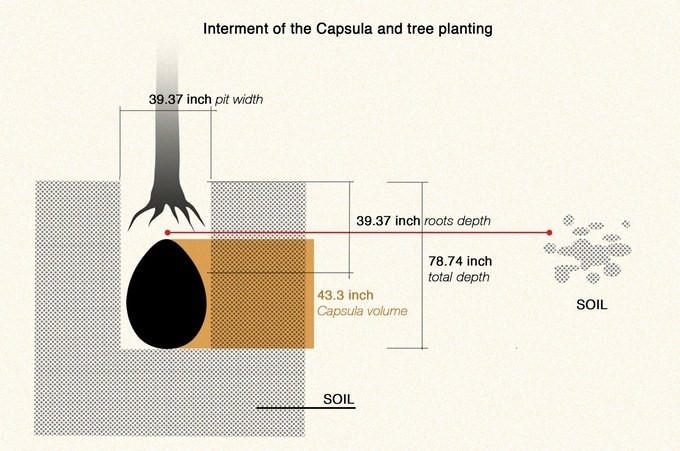 კონტეინერი, რომელმაც ტრადიციული კუბო უნდა შეცვალოს, სრულიად ორგანული და ბიოდეგრადირებადია. ხის გაზრდის უზრუნველსაყოფად ადამიანის სხეული საკვებ ნივთიერებებად გადაიქცევა. ეს ყველაფერი თითქოს უცნაურად ჟღერს, მაგრამ სინამდვილეში აბსოლუტურად ბუნებრივი პროცესია.