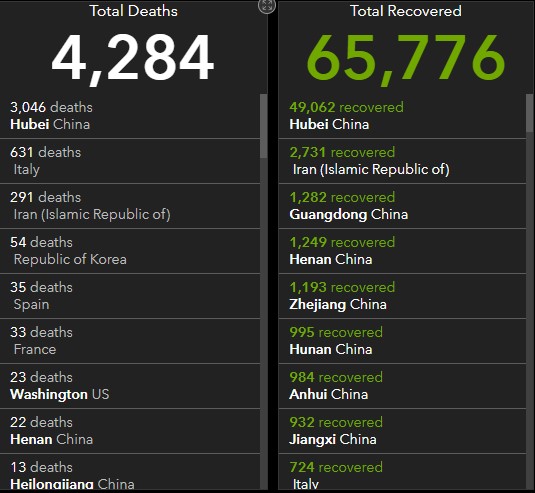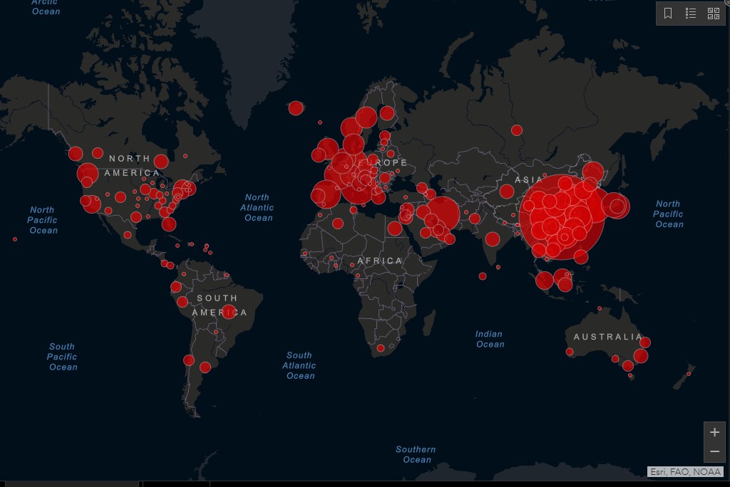 ჯონ ჰოპკინსის უნივერსიტეტის სისტემების მეცნიერებისა და ინჟინერიის ცენტრის ინტერაქტიული რუკა,  ერთ-ერთი ყველაზე სრულყოფილი ონლაინ წყაროა რომელიც კორონავირუსის გავრცელების კერებს რეალურ დროში გვიჩვენებს.