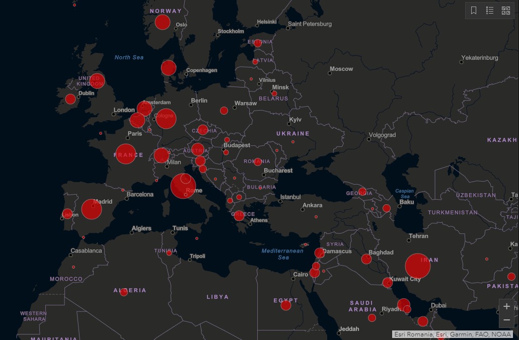 ვირუსის გავრცელება ევროპისა და ახლო აღმოსავლეთის მასშტაბით ამ დროისთვის