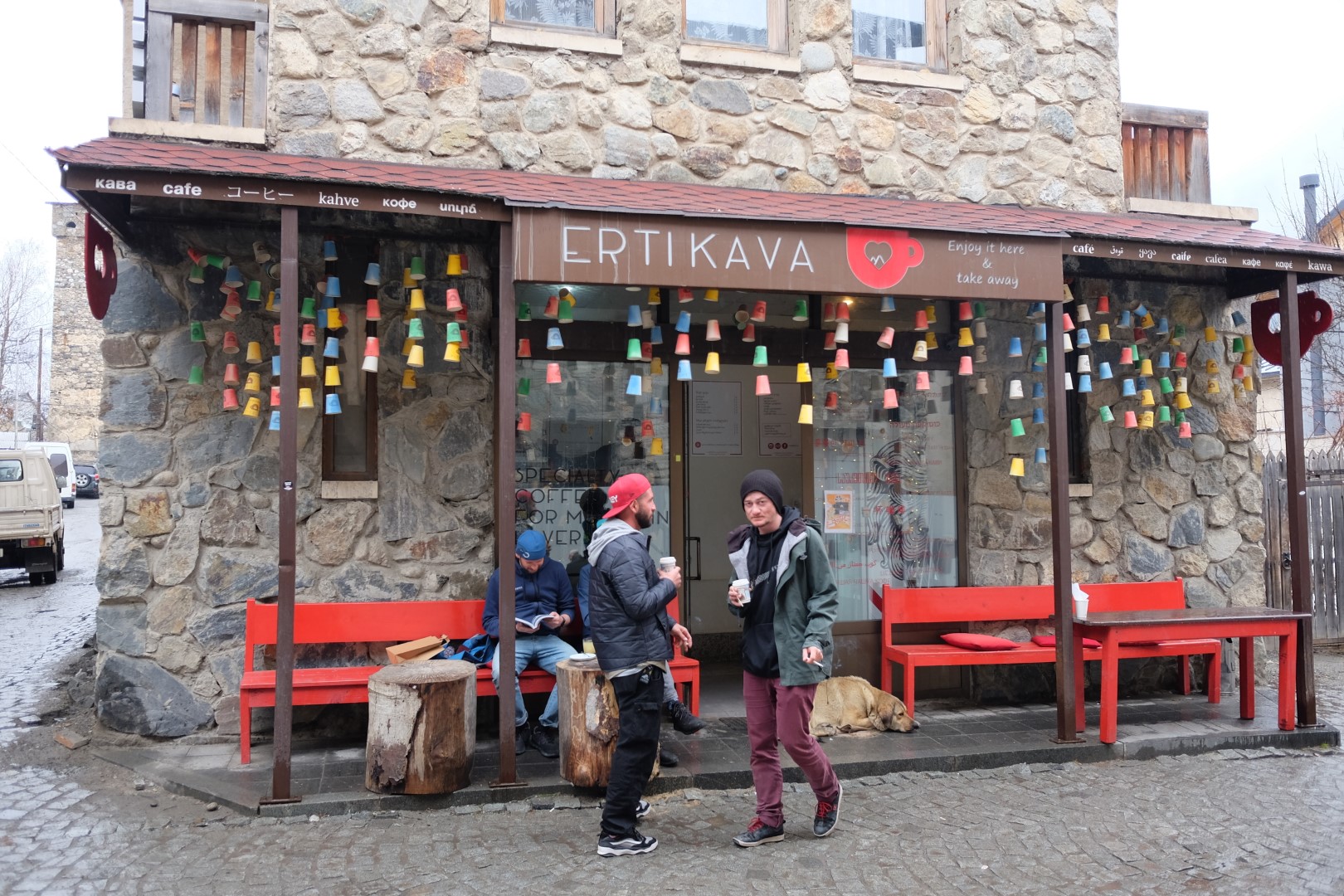 “ერთ ყავაში” არა მხოლოდ მესტიის, არამედ მთელი ქვეყნის მასშტაბით ერთ-ერთი საუკეთესო ყავა აქვთ. აქვე იყიდება საუკეთესო ქართული ჩაი “კონა” და ლამაზი სუვენირები.