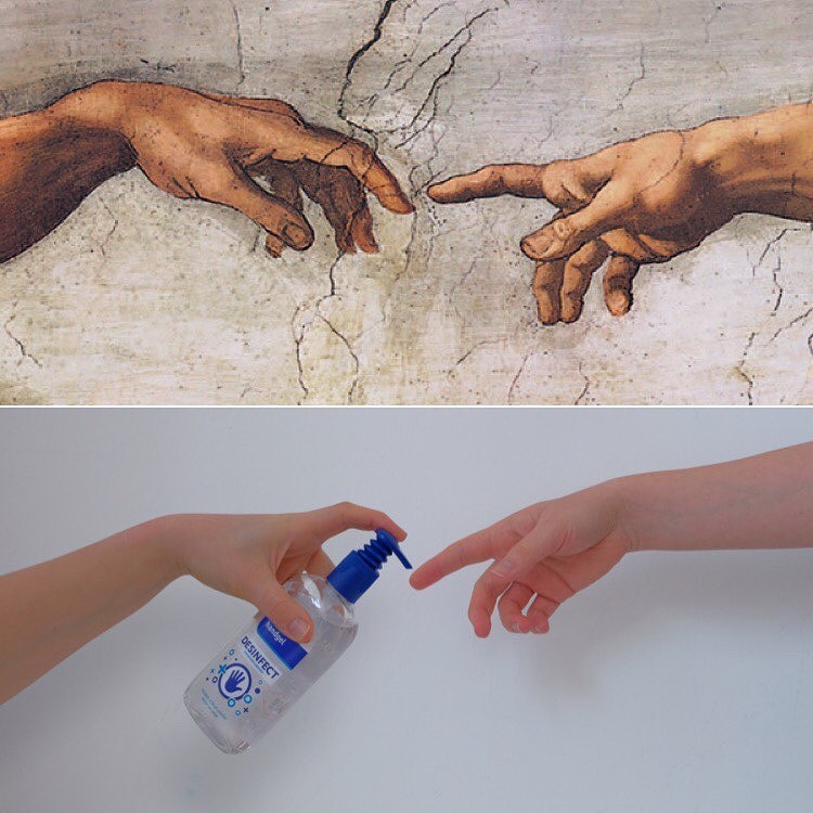 თვითიზოლაციის განმავლობაში სახლებში გამოკეტილი ხალხი გონივრულად ცდილობს დროის გამოყენებას და  საკუთარ თავს (ან მოხალისეებს) ცნობილ ფერწერულ ტილოდ გარდასახავს. ნამუშევრებში თქვენ შეხვდებით როგორც მიქელანჯელოს “ადამის შექმნას”, ასევე ედვარდ მუნკის “კივილს”.