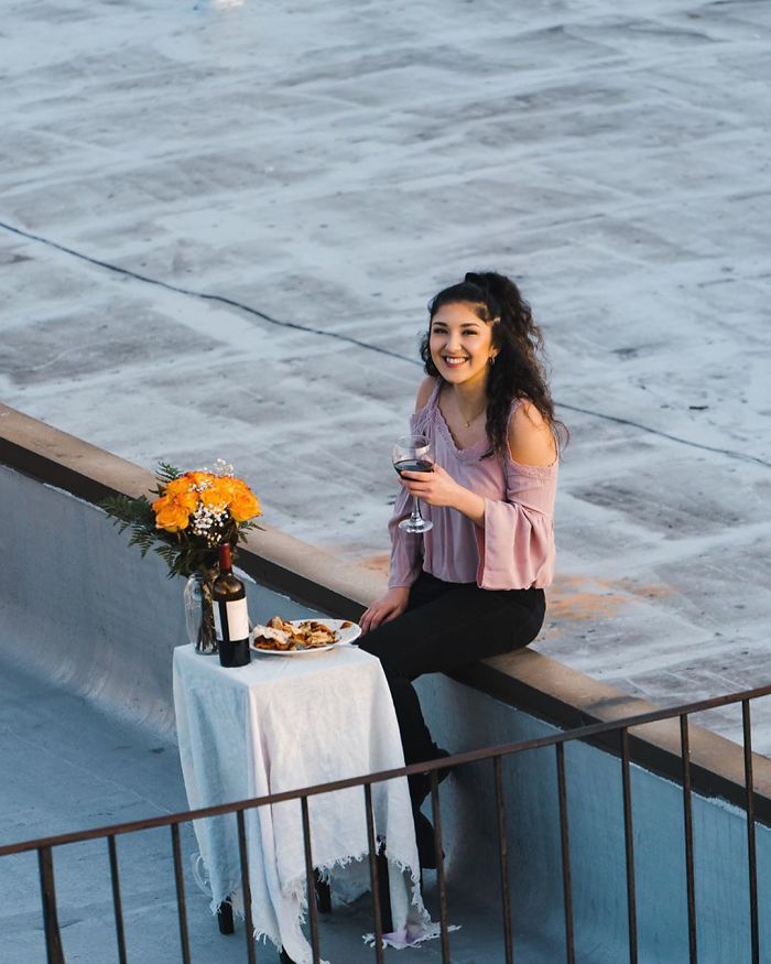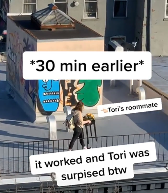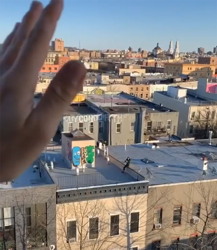 ბრუკლინში ჯერემი კოენმა მისი სახლის გვერდით მდებარე შენობის  სახურავზე მოცეკვავე გოგონა შენიშნა. ჯერემიმ გოგონას ხელი დაუქნია და მას საპასუხოდ მეზობელიც მიესალმა. ამის შემდეგ ჯერემიმ გოგონასთან დრონი გაგზავნა და ასე დაიწყო ეს რომანტიკული ისტორია. Bored Panda-მ ჰკითხა ჯერემის, რამ შთააგონა ეს რომანტიკული ჟესტი. “დიდი ხანია, რაც პაემანზე არ ვყოფილვარ. ვფიქრობ, რომ სოციალური ინტერაქცია მწყუროდა და კედლებით შემოსაზღვრამ შემოქმედებითობისკენ მიბიძგა.”
