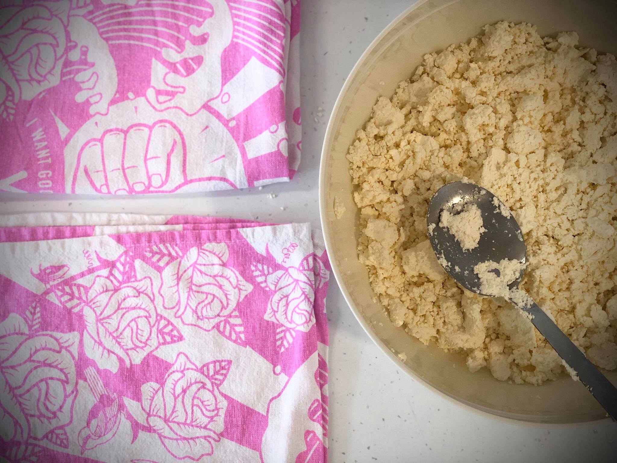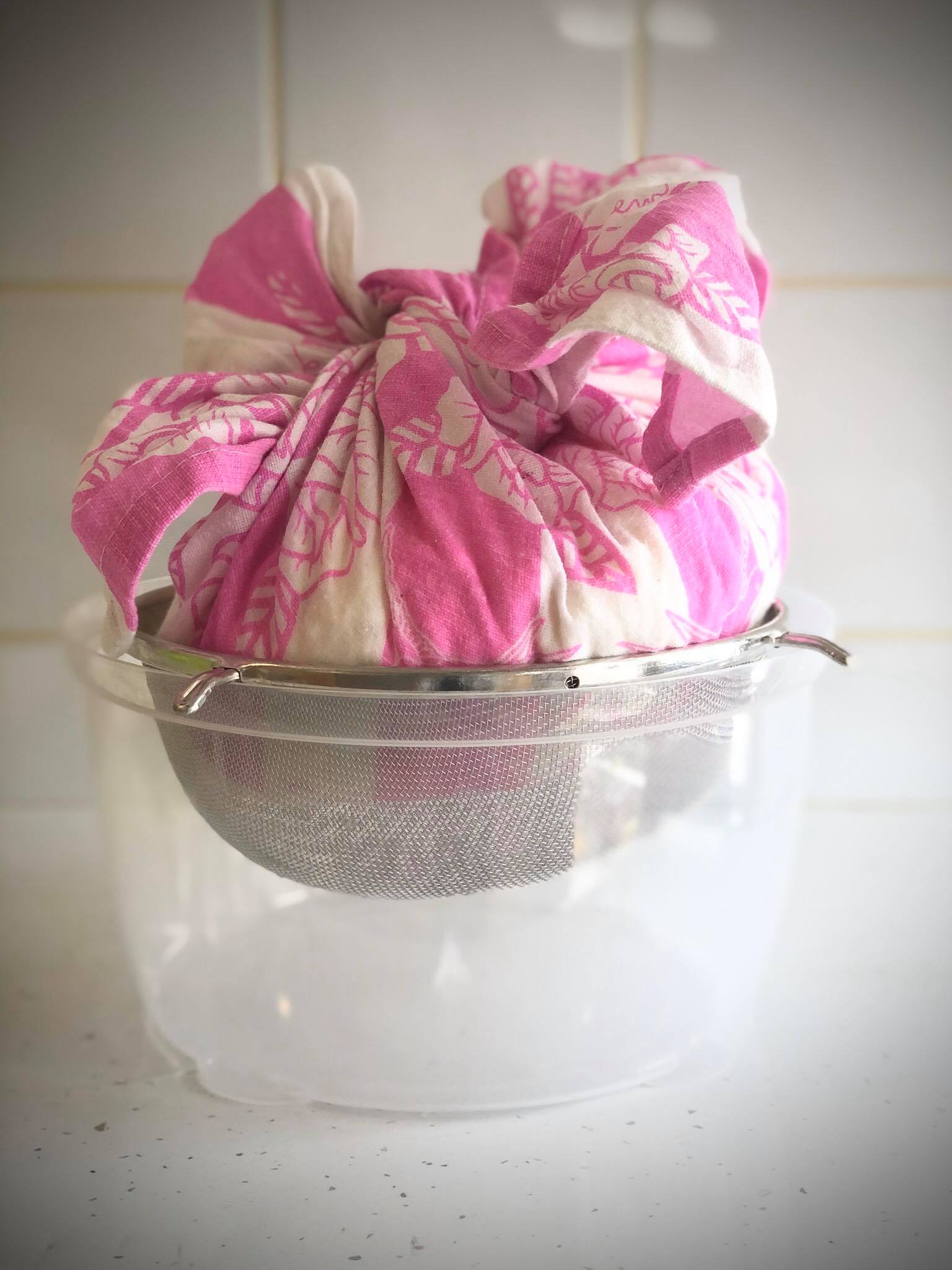 - ვიღებთ ხაჭოს და ვკვანძავთ ჩაის ტილოში და საწურში ვათავსებთ, ვადებთ სიმძიმეს (რაც სახლში მძიმე და სუფთა შეგხვდებათ) ისე რომ გაიწუროს 24 საათის მანძილზე, წყალი რაც გაუვა ასხავთ