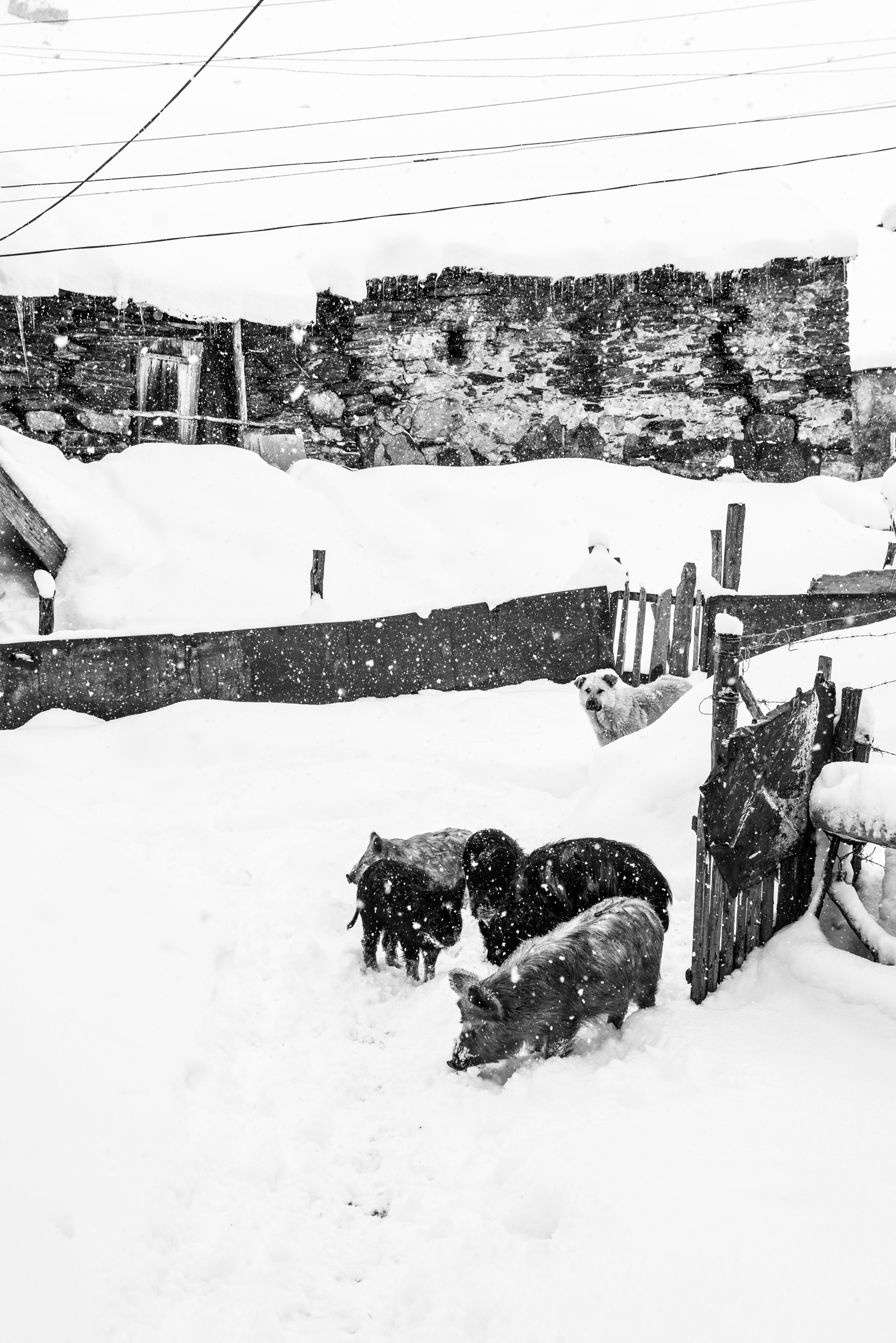 მარტის ბოლოს უშგულში ნახევარმეტრიანი თოვლი მოვიდა. აღმოჩნდა რომ ცხენები, ხარები, ძაღლები, გოჭები, უაზები თეთრ ფონზე ბევრად უფრო განგაწყობენ გადასაღებად ვიდრე ისე.
