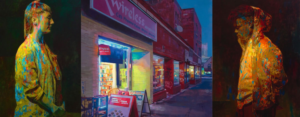 განსაცვიფრებელი 6-მეტრიანი ტრიპტიხი ტორონტოს ხედებით გვიჩვენებს ქალაქს დღის სხვადასხვა მონაკვეთში. ეს ყოვლისმომცველი ხედი ამ სერიის საფუძველს ქმნის, დანარჩენი ნახატები კი უფრო პირადულ სცენებსა და პორტრეტებს ასახავს. მათ შორისაა რამდენიმე ნამუშევარი, რომლებიც ედუარდ ჰოპერის შედევრის, “ღამის მტაცებლების” შთაგონებითაა შექმნილი. მაგალითად, მორიმოტოს Night Gazers ჰოპერის ნახატს პირდაპირ იმოწმებს და გვიჩვენებს სასურსათო მაღაზიის წინ მდგომ სამ პირს, რომლებიც ერთდროულად გამოხატავენ მიზანსა და მოწყენილობას.