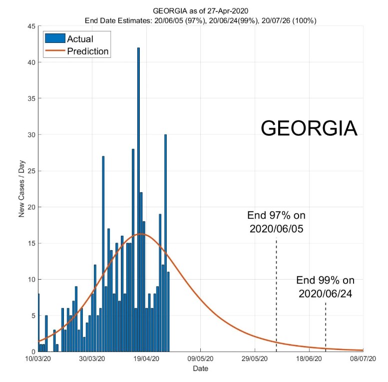 საპროგნოზო საიტის მონაცემებით, საქართველოში პანდემიის დასასრულად 2020 წლის 6 ივნისი სახელდება.