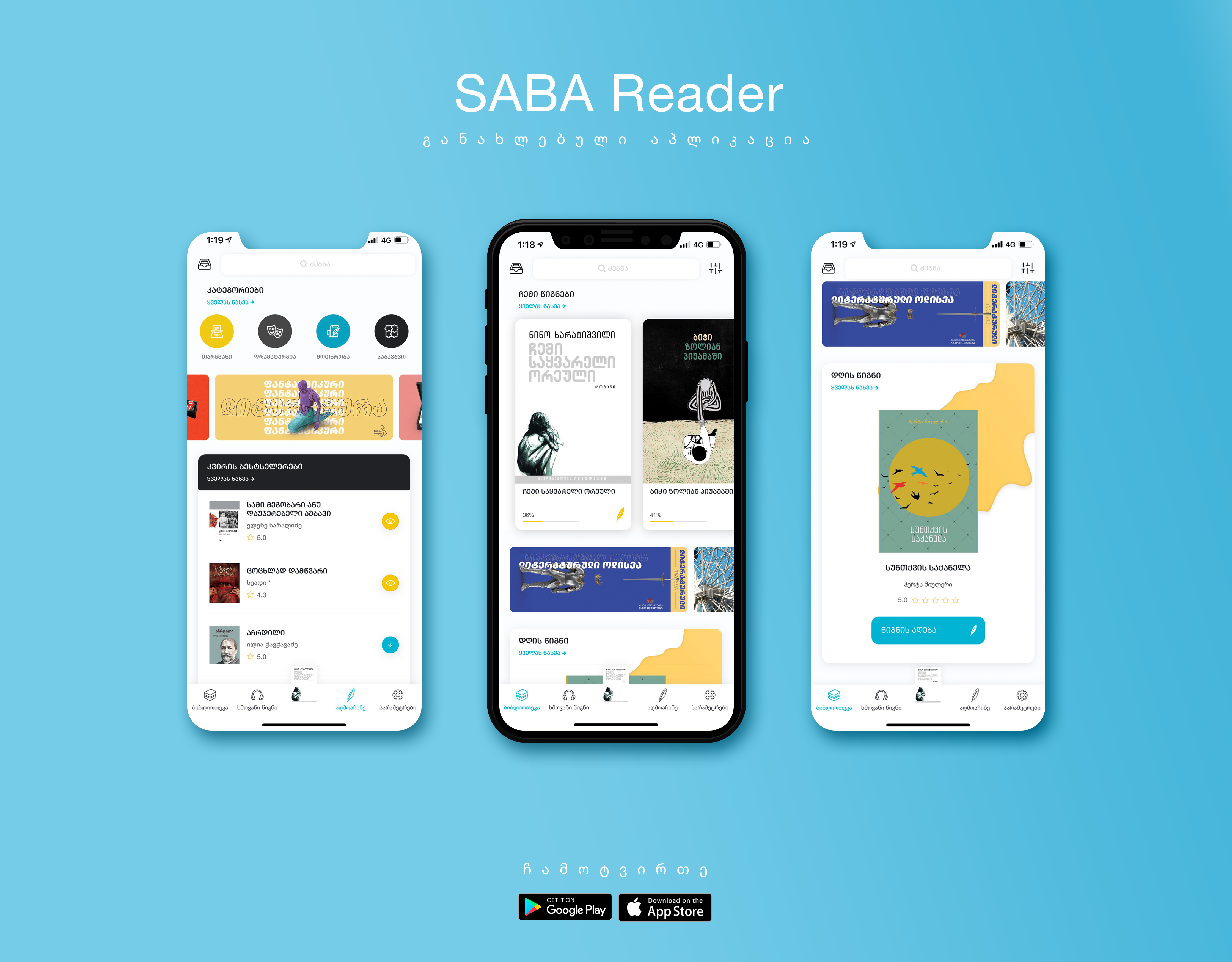 “საბკულტურა — ეს არის ლიტერატურული მოძრაობა, რომელიც ქმნის აქტივობებს ადამიანებისთვის, ვისაც ლიტერატურა უყვარს. სწორედ ამ მოძრაობის ფარგლებში ზაფხულში მკითხველებს შევთავაზეთ განახლებული აპლიკაცია SABA Reader, რომელიც წიგნის მოყვარულებს კითხვის საუკეთესო გამოცდილებას სთავაზობს. აპლიკაციასთან ერთად ხელმისაწვდომი გახდა გამოწერის, ე.წ. ბიბლიოთეკით სარგებლობის მოდელიც – წვდომა 6000-ზე მეტ ელექტრონულ და ხმოვან წიგნზე, ლექციასა და პოდკასტზე.