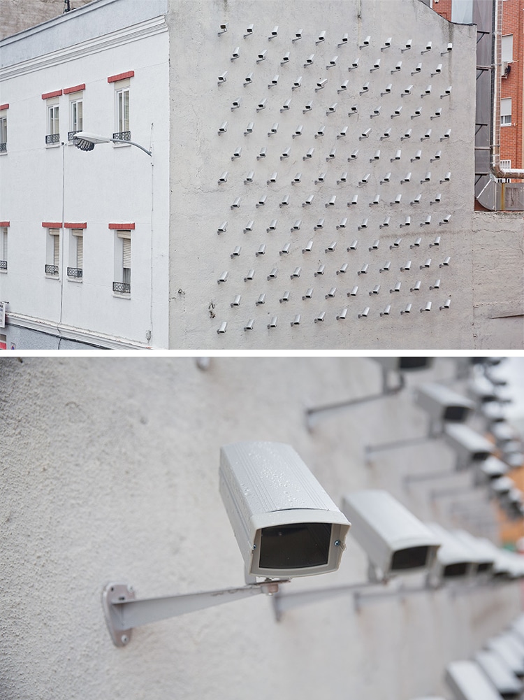 SpY- მ ესპანეთში, ამ შენობის ფასადზე 150 ყალბი უსაფრთხოების კამერა დაამონტაჟა. კამერები, რომლებიც არაფერს უყურებენ, მაგრამ ამავე დროს ყველაფერს ხედავენ, შორიდან კედელზე მიხატულს ჰგვანან.