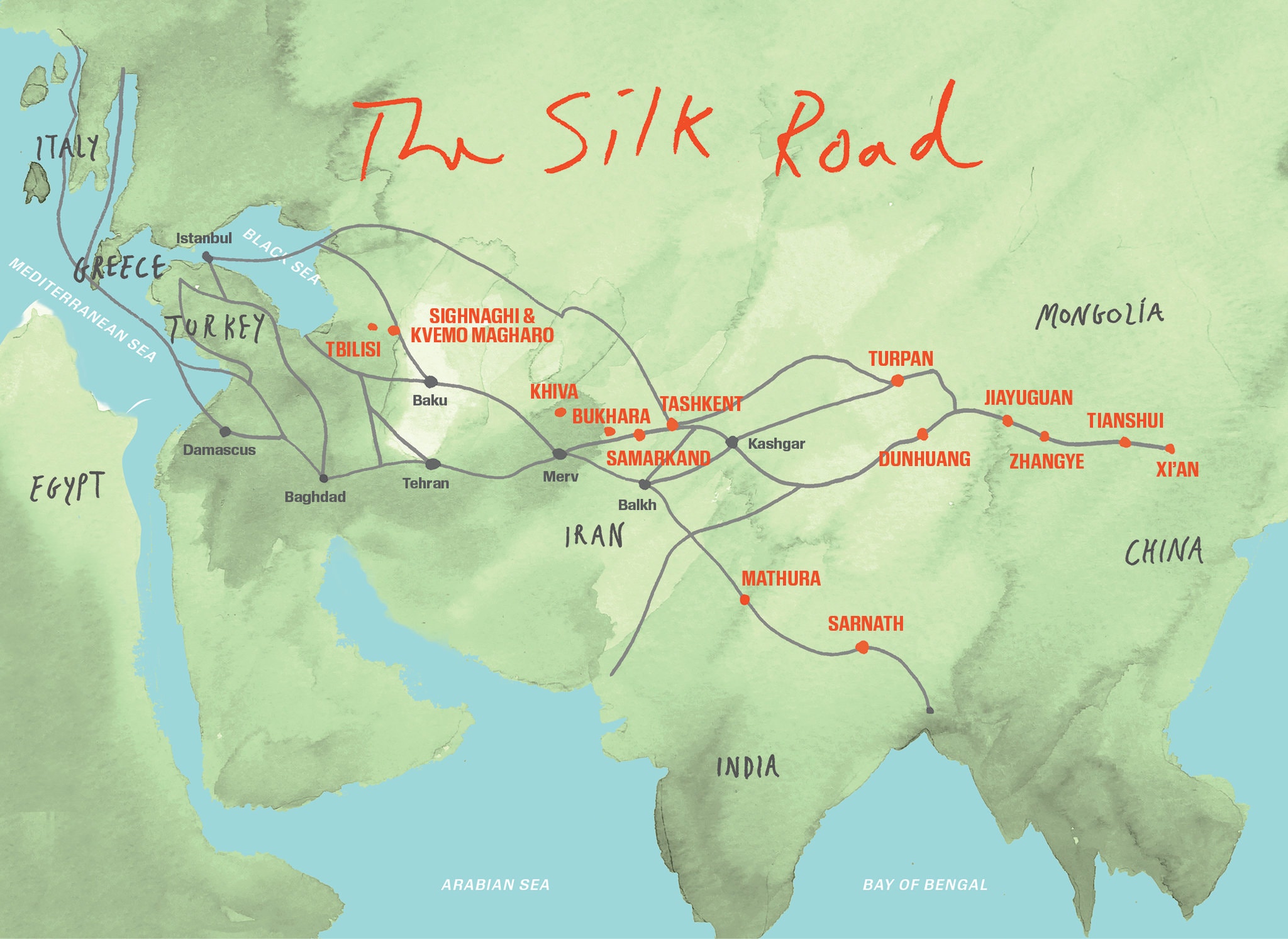 თუ საქართველოში გადაწყვეტთ წასვლას,  Silk Road Adventures-ის მეგზურებს ტურების დაგეგმვა შეუძლიათ ისეთ ისტორიულ ადგილებში, როგორიცაა ცისფერი სასახლე, თანამედროვე ტექსტილის ხელოვანისა და ისტორიკოსის, ნინო ყიფშიძის სახლი; თბილისის აბრეშუმის სახელმწიფო მუზეუმი; ასევე ქალაქგარეთი, სადაც ღვინის დაგემოვნებას და კავკასიონის ფონზე მდებარე მე-17 საუკუნის მონასტრების დათვალიერებას შეძლებთ.
