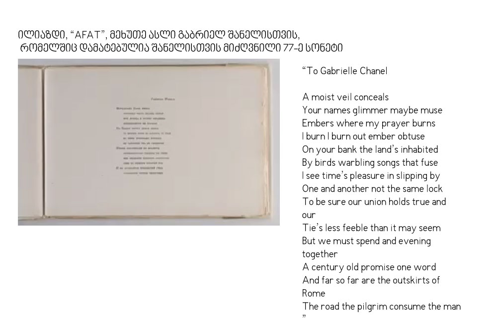 სტატია მომზადებულია მარიკა ჟანტის, შანელის ისტორიული მემკვიდრეობის დელეგატის, მოხსენების მიხედვით, არტ-ვილა “გარიყულასთან” თანამშრომლობით.
