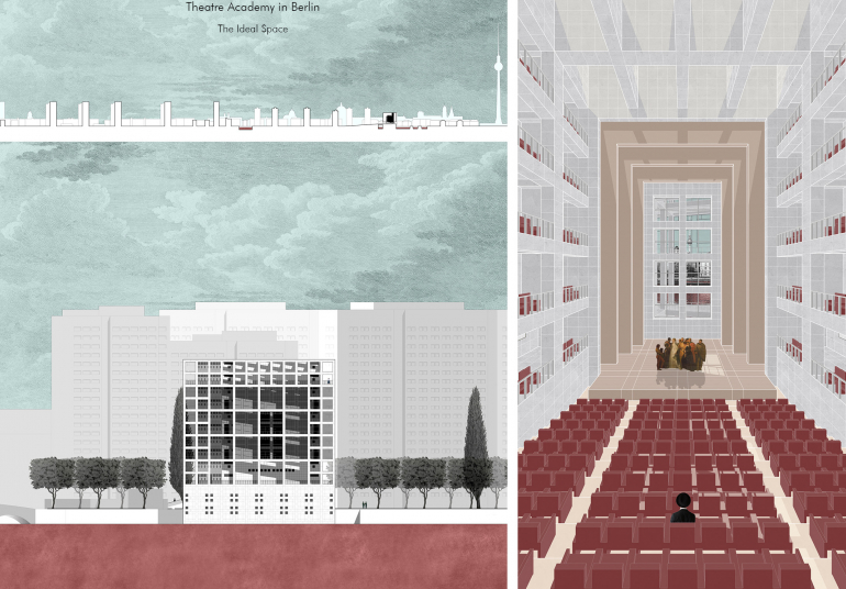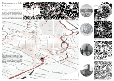 ნოდარ კვანჭიანი: ,,არქიტექტურული პროექტი – თეატრი და აკადემია ბერლინში, (Theatre Academy in Berlin) ქალაქის მორფოლოგიური სტრუქტურის დეტალურ ანალიზს ეყრდნობა და ჰარმონიულად ასრულებს ბერლინის ცენტრის სივრცულ და კულტუროლოგიურ დენსიფიკაციას. შედეგი საპროექტო ტერიტორიის მეტამორფოზაა ბერლინის ისტორიული განზომილების ხელახლა გააზრებით, ქალაქის, რომლის ურბანული სტრუქტურა წარმოადგენს მრავალი ისტორიული შრის სუპერიმპოზიციას”.