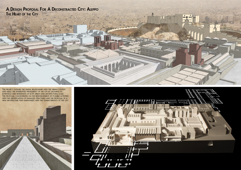 სალომე გუგუნავა: ,,საპროექტო ტერიტორია მდებარეობს სირიაში, ქალაქ ალეპოს დაბომბვისას განადგურებულ ისტორიულ ცენტრში. ქალაქგეგმარებითი პროექტი მიზნად ისახავს ალეპოს სოციალური, პოლიტიკური და კულტურული სივრცეების განახლებას, განვითარებას და ხელახლა ჩაწერას ქალაქის სტრუქტურაში. ნამუშევარი წინა პლანზე სწევს გამხატვრულებულ, არქიტექტონიკულ ელემენტებს და ხაზს უსვამს სივრცული კავშირების მნიშვნელობას ურბანულ კონტექსტში’’.