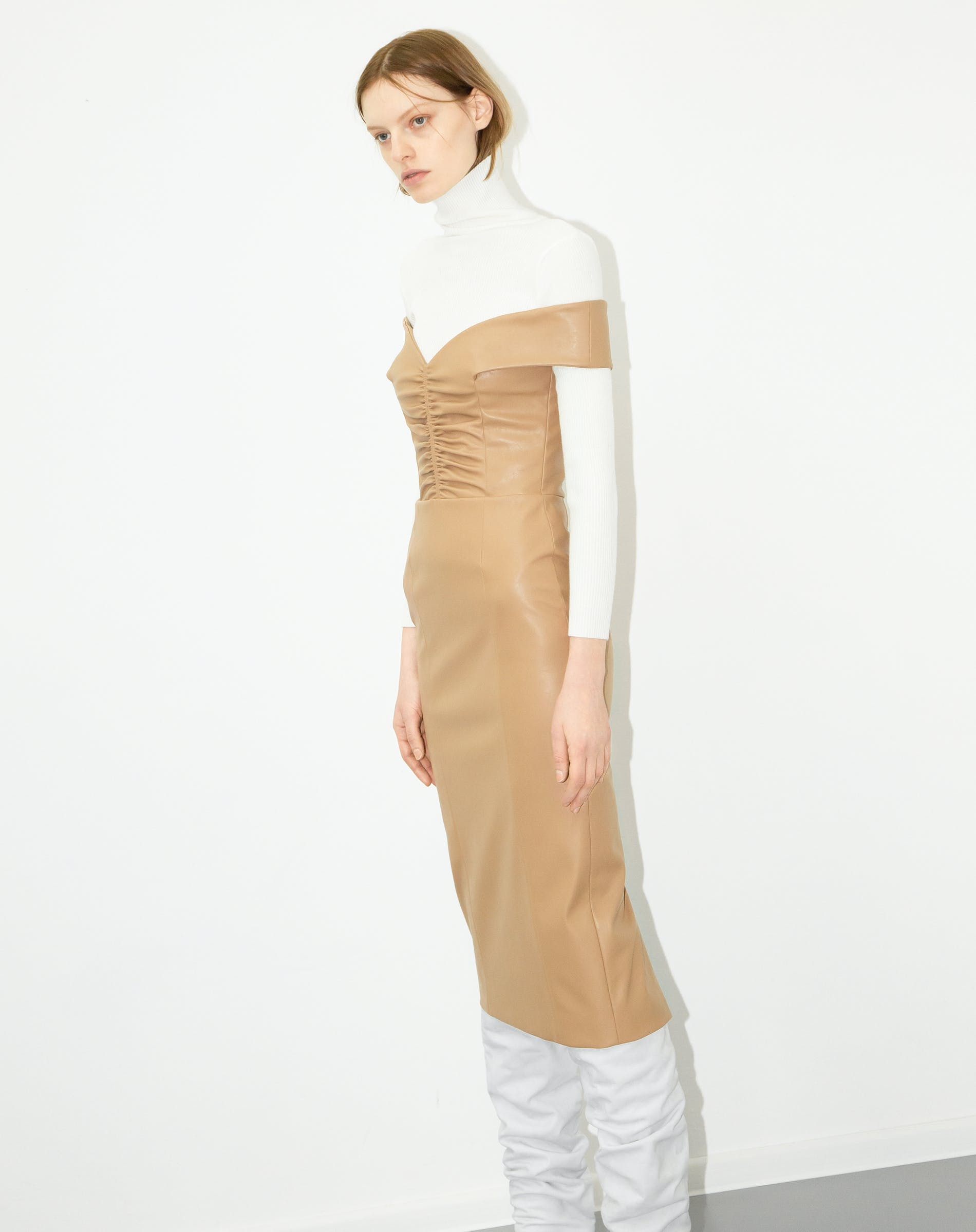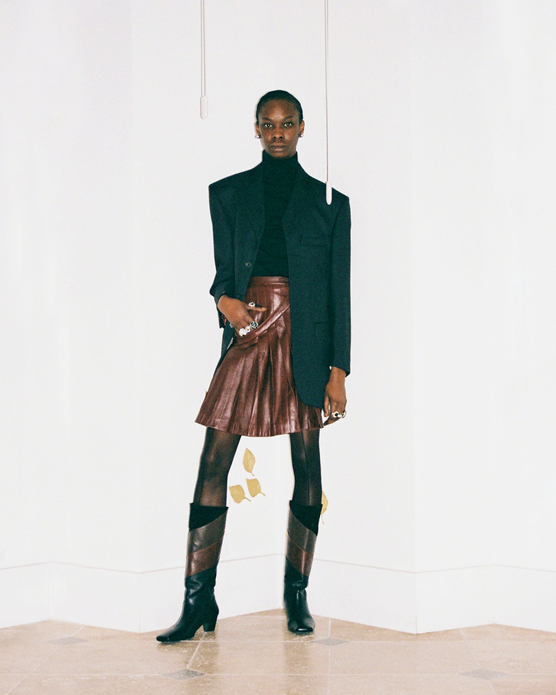 ალექსანდრე ახალკაციშვილი არასდროს უშინდება კოლექციაში ტყავის მსგავსი მასალის გამოყენებას და ამტკიცებს, რომ ტყავი ნამდვილად ელეგანტური გარდერობის უმნიშვნელოვანესი ნაწილია. სადა სილუეტები და ინდუსტრიული ბუნება, მისი დეტალები წლების განმავლობაში წამყვანი მოდის მნიშვნელოვან ნაწილებს ქმნის.