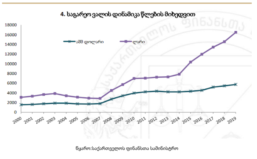 როგორც აღვნიშნეთ, ვალის გაზრდა ორი მიზეზით შეიძლება, ერთი – მეტი ვალის აღების, მეორე – ვალუტის არამდგრადობით. საქართველოს შემთხვევაში, ბოლო წლებში, ქვეყნის საგარეო ვალის გაზრდა ლარის კურსის გაუფასურებითა და პარალელურად, მშპ-ის ზრდის ტემპის დაცემით არის გამოწვეული.