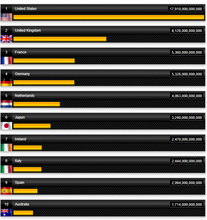 2019 წლის მონაცემებით, მსოფლიოში ყველაზე დიდი საგარეო ვალი აშშ-ს აქვს. ზოგადად, განვითარებულ ქვეყნებს უფრო მეტი საგარეო ვალი აქვთ, თუმცა უნდა გავითვალისწინოთ, რომ ასეთ ქვეყნების გასესხებული თანხის მოცულობაც საკმაოდ მაღალია და მათ ეკონომიკასაც მეტი ვალის დაბრუნების შესაძლებლობა აქვს.