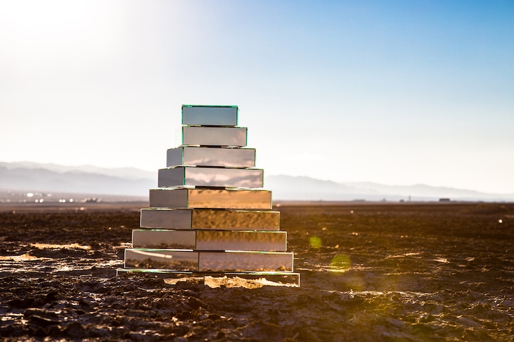ირანელმა ხელოვანმა შირინ აბედინირადმა ბუნებასთან ურთიერთობის შესასწავლად სარკეები იტალიის, ავსტრალიისა და ირანის სხვადასხვა ადგილებში განათავსა. მისმა შემოქმედებითმა გამოფენებმა მთელი მსოფლიო სხვადასხვა ფორმით მოიცვა, მაგალითად, ქვიშაში ჩაფლული ღია კარით ან ამრეკლავი საფეხურებით, რომლებიც უდაბნოში მიიკვლევენ გზას.