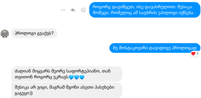 გურამი: და ხელოვნება? ხელოვნება (და ამ ქოლგის ქვეშ თეატრი) ვირუსია? ამას იმიტომ გეკითხები, რომ მახსოვს, ორივე – შენც და მეც – სარეპეტიციოში ხშირად ვიყენებდით სიტყვას – “გადადება”. რეპეტიცია ის პროცესია, როცა ყველა იქ მყოფი თავის ხედვებსა და სხეულებს ერთმანეთს ნებაყოფლობით უთმობს დასავირუსებლად? არის თეატრი ისეთი ადგილი, სადაც ადამიანები ფულს იხდიან ბილეთში, რომ დარბაზში რაღაცები გადასდონ და უკან დავირუსებულები წავიდნენ?