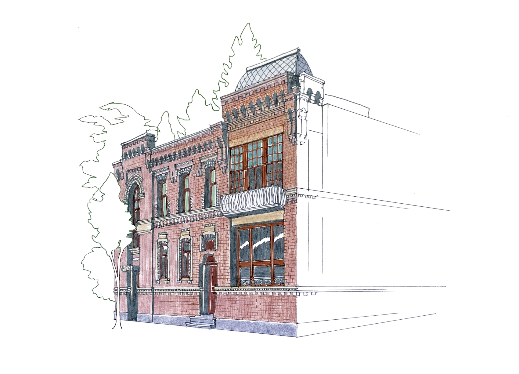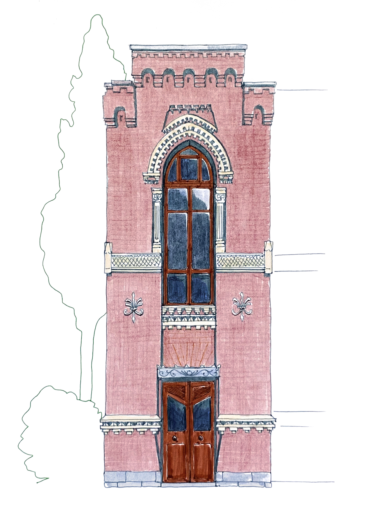 აქ არქიტექტორი ოდნავ განსხვავებულ ხერხს მიმართავს. თბილისური გოთიკა რიტმულია და მოქნილი, დროში აღბეჭდილია, როგორც ადგილობრივი დინების სტატიკური ფორმა, ამაზე მეტყველებს შენობის ერთი შეხედვით უცნაური გაგრძელება, რომელიც ცდილობს საკუთარი დრამატურგიის განვითარებას და გვაოცებს კიდეც, როდესაც აგურის მკაცრი კედლების უკან დელიკატურად შეკიდულ აივნებს აღმოვაჩენთ.
