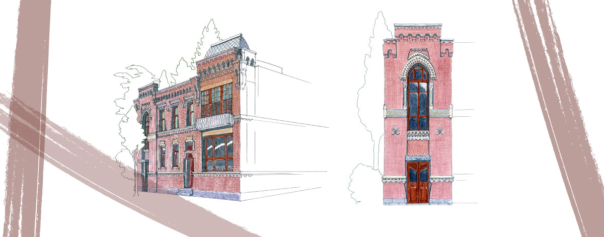 შენობის ერთიან სახეს შტერნი შეულესავი აგურით გაწყობილი კარნიზებით, სარტყლებით, ღიობების საპირეებით, ფაქიზად გამოყვანილი აივნებით, მცირე შეისრული თაღებით და ფანჯრების ელეგანტური მოყვანილობით კრავს. ფასადი თითქოს ორი შრისგან შედგება და იმდენად მკვიდრია, რამდენადაც დეტალებში მოძრავი და ამეტყველებული.
