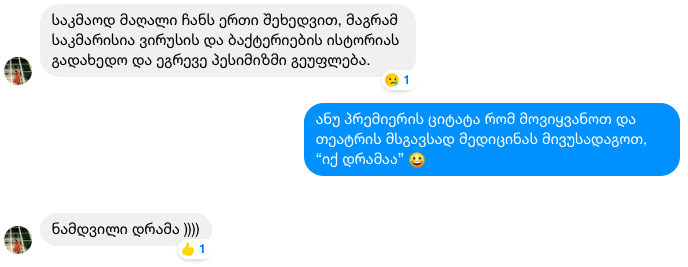 გურამი: და რა შეგრძნებაა, როცა ხედავ – მაყურებელი უშუალო დიალოგში შედის შენს გამოგონილ, ფიქტიურ პერსონაჟთან (ეჩხუბება, ან მიმართავს ფეისბუქის გვერდზე)?