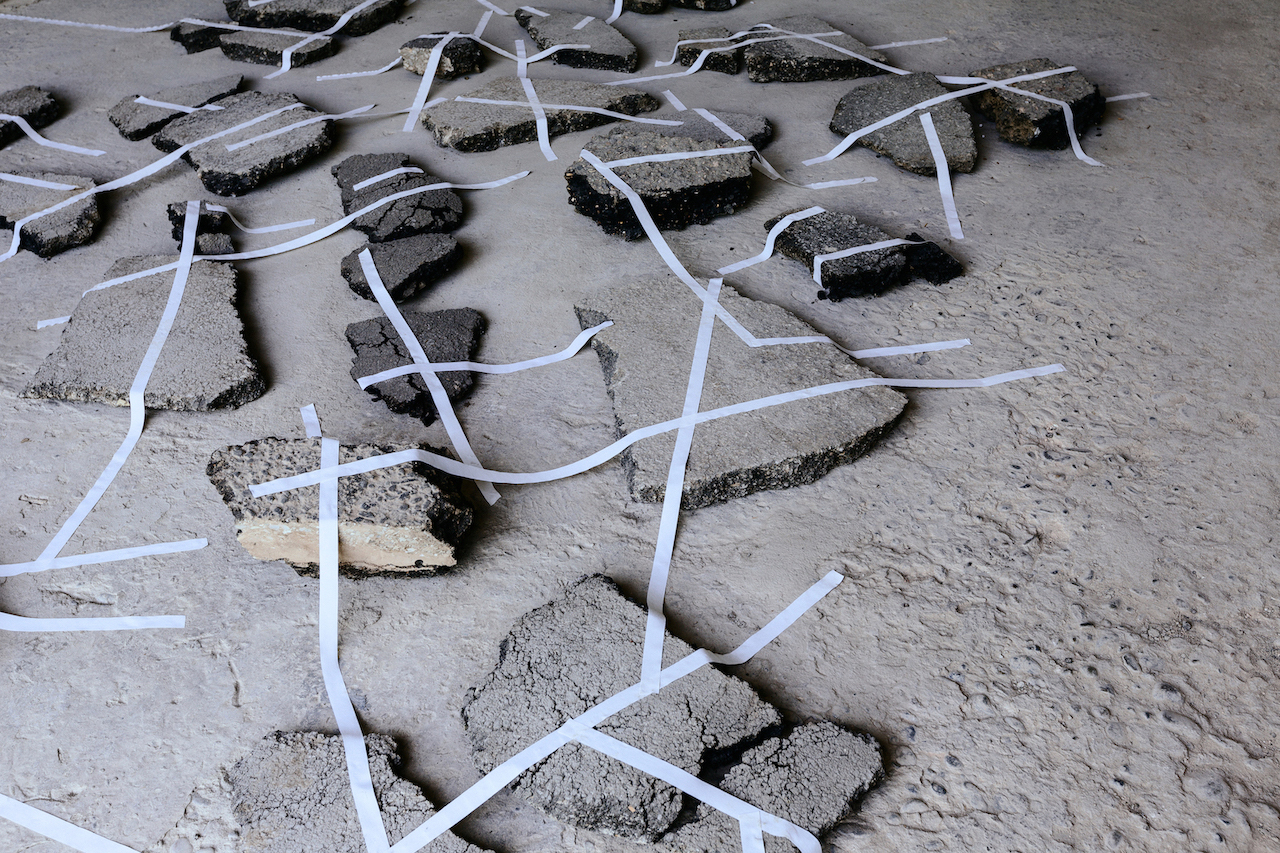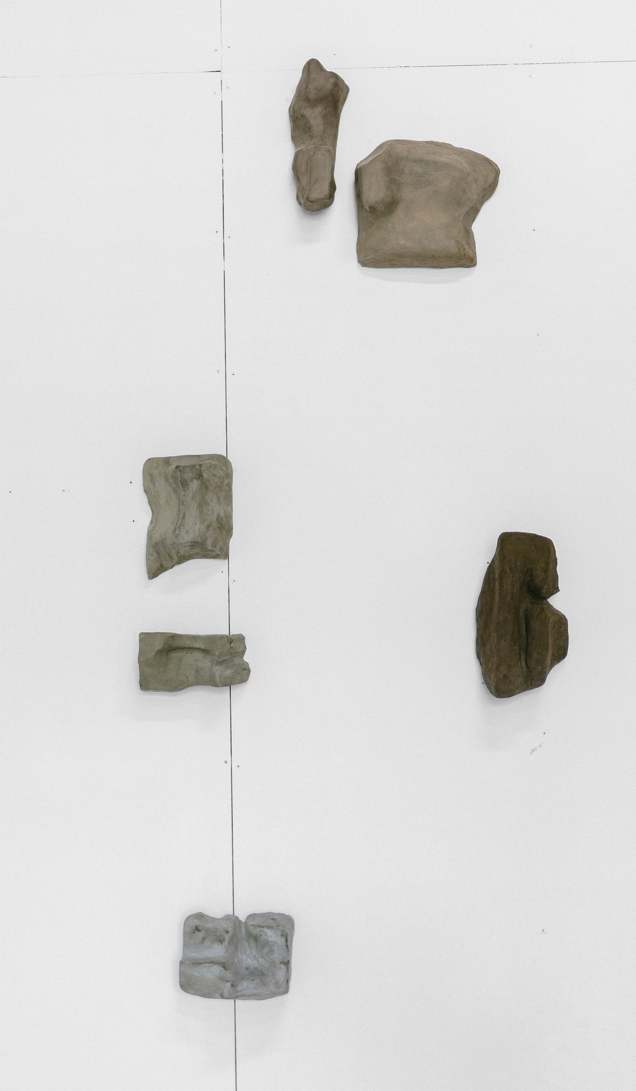 ოთახში წარმოდგენილი იყო ორი სხვადასხვა ნამუშევარი, თაბაშირის ქანდაკებები და სამედიცინო ლეიკოპლასტირით ერთმანეთთან გადაბმული ასფალტი, რომლებიც ერთი სათაურის ქვეშ გავაერთიანე – 1,9999… ორივე ნამუშევრისთვის საერთოა ჩემი ინტერესი ფორმების მიმართ. ფორმა არის მატერიალური საგნის აუცილებლობა, რომელიც შეიძლება უსასრულობამდე შეიცვალოს, უსასრულო სახე მიიღოს და უსაზღვროდ მრავალფეროვანი იყოს.