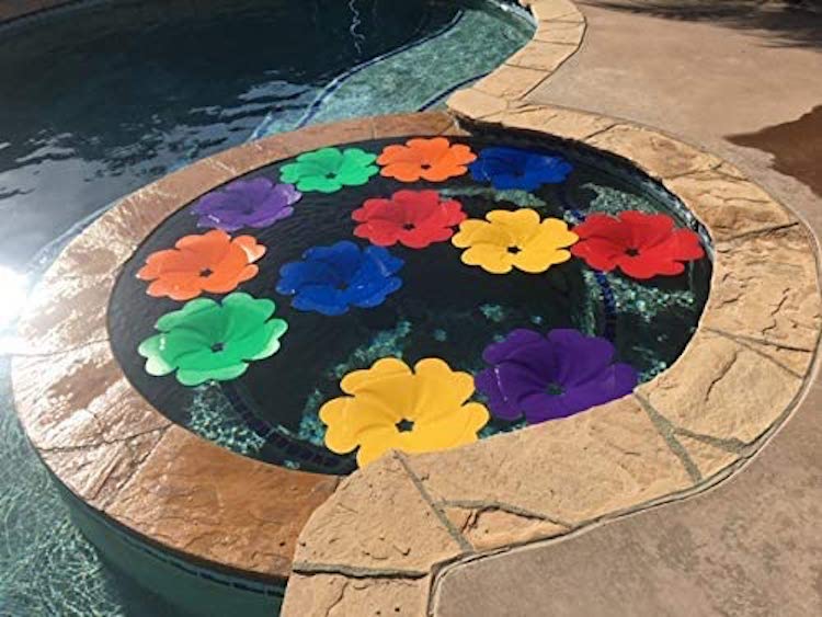აუზის გამათბობელი ყვავილები სამ: შავ, ცისფერ ან ცისარტყელას ფერშია. 22-სანტიმეტრიანი დიამეტრის მქონე ყვავილები გადამუშავებული პლასტსმასისგანაა დამზადებული და ისინი სხვადასხვა ზემოქმედების მიმართ რეზისტენტული არიან. უბრალოდ ჩაალაგეთ ისინი თქვენს აუზში და შეიგრძენით ტემპერატურის სხვაობა. მზის გულზე ისინი მაშინვე სითბოს წარმოქმნას იწყებენ.