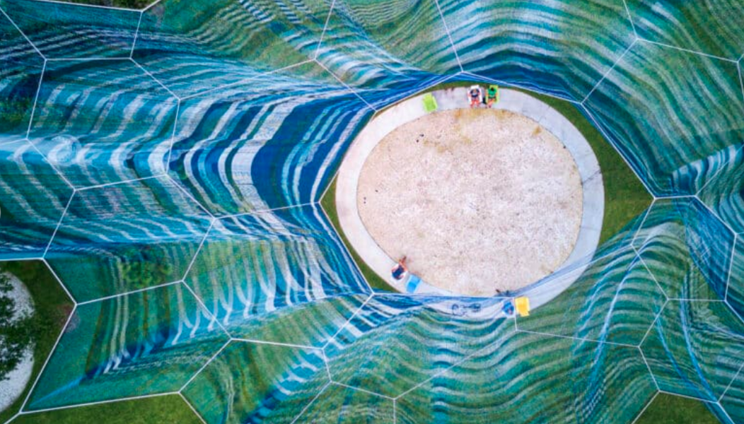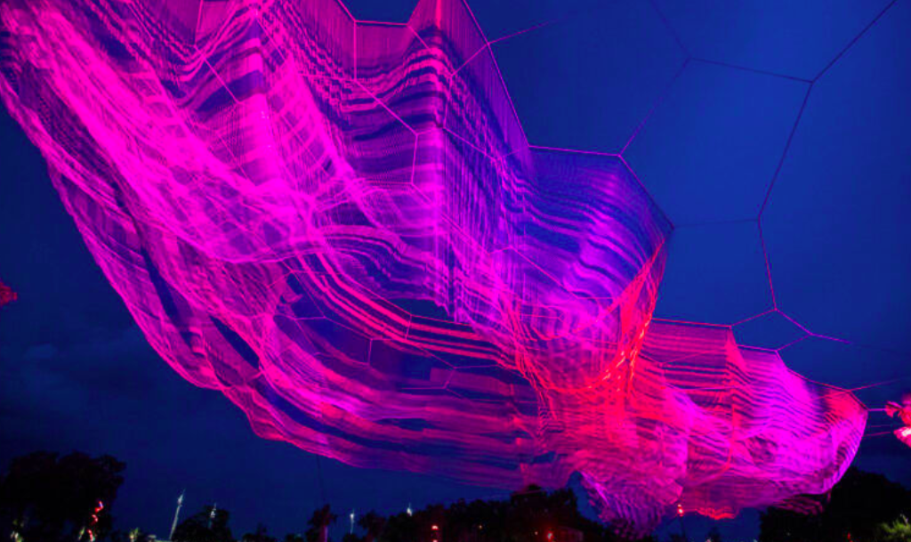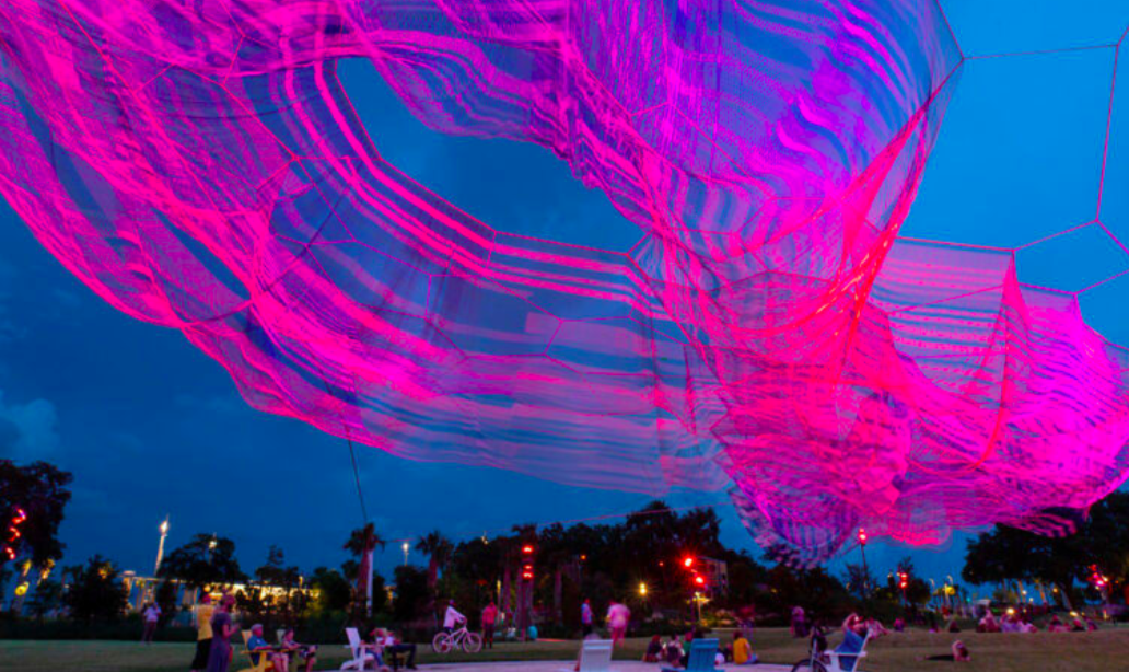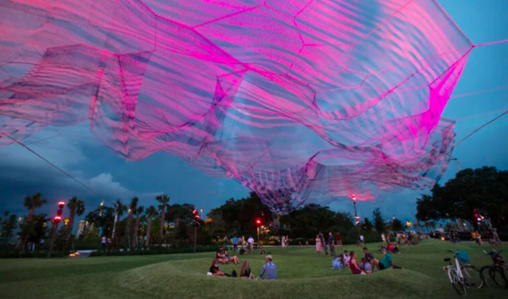 ჯანეტ ეშელმანის საჰაერო სკულპტურაში მილიონზე მეტი კვანძია გამოყენებული, უფრო ზუსტად კი – 1,662,528. Bending Arc ფლორიდის ქალაქ სანქტ-პეტერბურგშია განთავსებული და მარტინ ლუთერ კინგის 1968 წლის ფრაზიდან წარმოიქმნა: ”მორალური სამყაროს რკალი გრძელია, მაგრამ ის სამართლიანობისაკენ იხრება”.