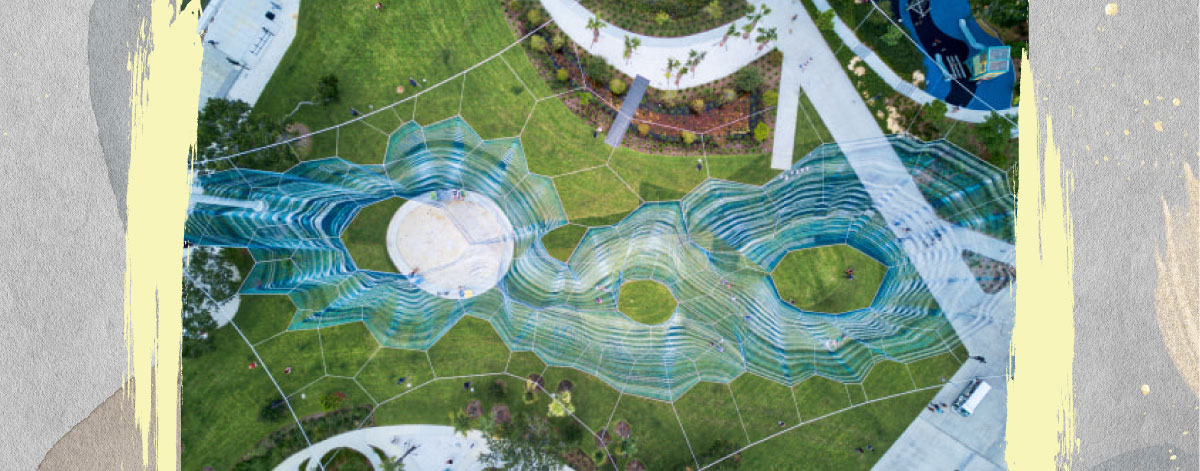 ჯანეტ ეშელმანმა ეს ისტორია სკულპტურაში გააერთიანა და მისი სხვა ნამუშევრების მსგავსად, Bending Arc გარემოსთან დაკავშირებული ინსტალაციაა, რომლისთვისაც ცა ერთგვარი “ტილოა”. მისი ინსტალაციები ფიზიკურად მასიური და ლამაზია, ხოლო მოძრაობის, ფერისა და გამჭირვალობის მიქსი კი ილუზიურ გამოსახულებას ქმნის. სიმბოლური თვალსაზრისით, სკულპტურა ბევრად უფრო მეტია, ვიდრე გარემო – ის შთაგონებულია სივრცის, წვდომისა და ურბანული დიზაინის პოლიტიკით. “ჩემი ნამუშევრის ძალა მის გამძლეობასა და ადაპტირებაშია, რადგან ის ქარს მასში გადაადგილების საშუალებას აძლევს და არ ებრძვის. ვფიქრობ, რომ ეს მეტაფორაა იმის შესახებ, თუ როგორ უნდა იცხოვრო ამ დროს”, – აღნიშნა ჯანეტმა.