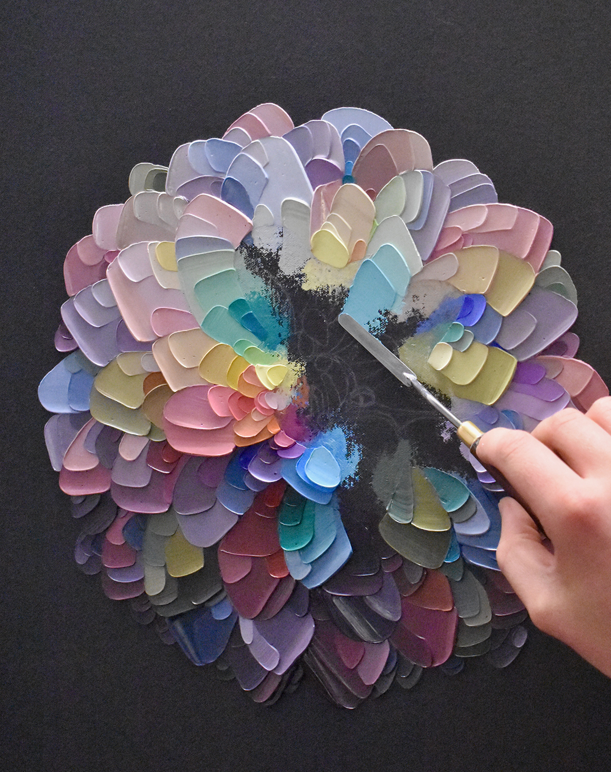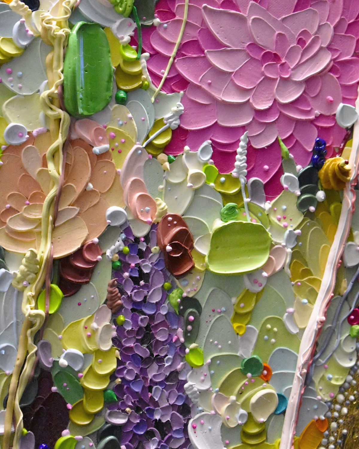 ახალ ზელანდიაში მცხოვრები 23 წლის მხატვარი ყვავილებს  პალიტრის ერთი დანით ხატავს. თითოეული დეტალის შესაქმნელად იგი ზეთისა და აკრილის საღებავების ფენებს მყარ ტილოზე ანაწილებს. ხელოვანი ყოველთვის ერთგვაროვან ფერთა პალიტრას მიჰყვება და ზოგჯერ ზუსტ გრადიენტებსაც კი იყენებს ლურჯისა და იისფერის ყველა ჩრდილის მისაღებად.