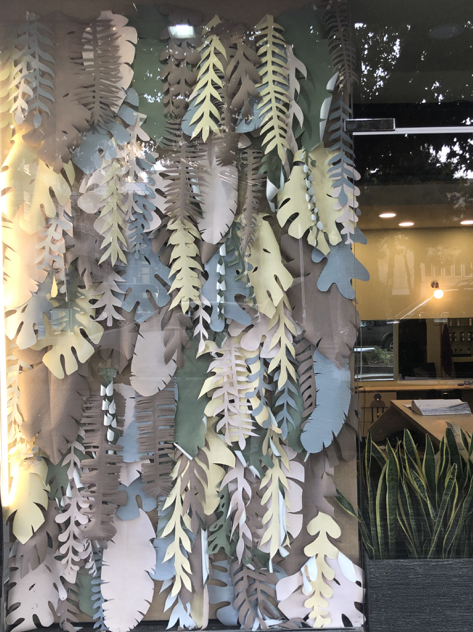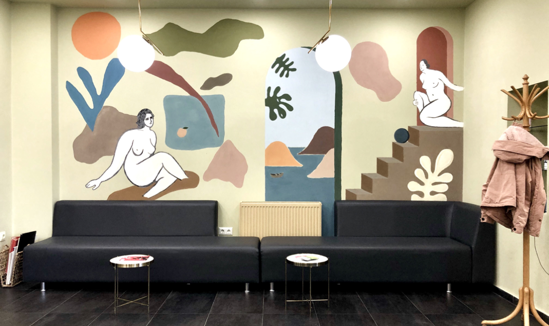 ინტერიერში შემოვიტანე ხის მასალა, თბილი ფერადი ტონებით კი უფრო გავაცოცხლე იქაურობა. მინდოდა, იქ შესულ მომხმარებელს თავი უფრო კარგად და სასიამოვნოდ ეგრძნო. მთავარი აქცენტი ერთ კედელზე გაკეთდა, რომელიც ჩემს მეგობრებთან ერთად ხელით მოვხატე. დამკვეთმა და ობიექტმა ასევე საშუალება მომცა გამეკეთებინა ვიტრინა და მასზე მემუშავა. მოვიფიქრე მარტივი მექანიზმი, რომელიც საშუალებას იძლევა ვიტრინაში განთავსებული დიზაინი ყოველ სეზონზე შეიცვალოს.