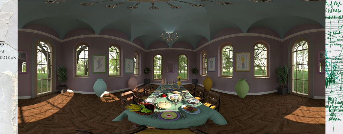 მე შევქმენი ინტერიერი, რომელშიც მრავლად იყო გამოყენებული ქართული და ევროპული დეტალები. ინტერიერში მთავარ როლს გაშლილი სუფრა წარმოადგენდა, სადაც თქვენ ფერად მწვადს, ხინკალს და ყანწებს შეხვდებოდით. დამთვალიერებელს შეეძლო რეალურად არსებულ სუფრასთან დაჯდომით და VR-სათვალის გაკეთებით, ვირტუალურ “ულალა” სუფრაზე მოხვედრილიყო.