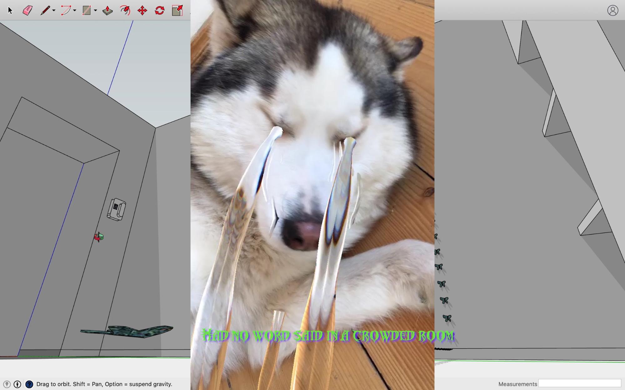 თავიდანვე სივრცის რენდერი გავაკეთე, რომელიც ვიდეოშია გამოყენებული და ვეცადე განმესაზღვრა თითოეული დეტალი, რომელიც, საბოლოოდ, ერთიანად უნდა წაკითხულიყო. ეს არის სხვადასხვა მედიაში შესრულებული ნამუშევრების დინამიკა, რომელსაც დამთვალიერებელი უნდა გაჰყვეს.