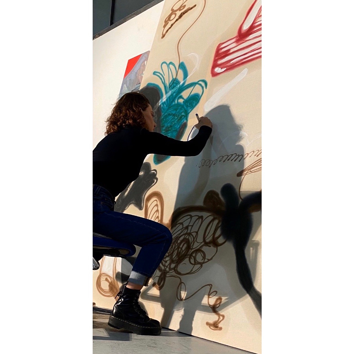 — შარშან ამ ორგანიზაცია „პროპაგანდას“ კოლექტიური სტუდიების რეზიდენტი გავხდი, „სტამბა D ბლოკ-ში“, მაშინ ჯერ კიდევ მხოლოდ პატარა ზომის ტილოებზე ვმუშაობდი, როდესაც დიდ სივრცეში მომეცა მუშაობის შესაძლებლობა, პირველ რიგში ფიზიკურად ვიგრძენი თავისუფლება მოძრაობაში ხატვის პროცესის დროს და მივხვდი, ეს სივრცე ბოლომდე უნდა ამეთვისებინა და დიდ ტილოებზე დამეწყო მუშაობა.