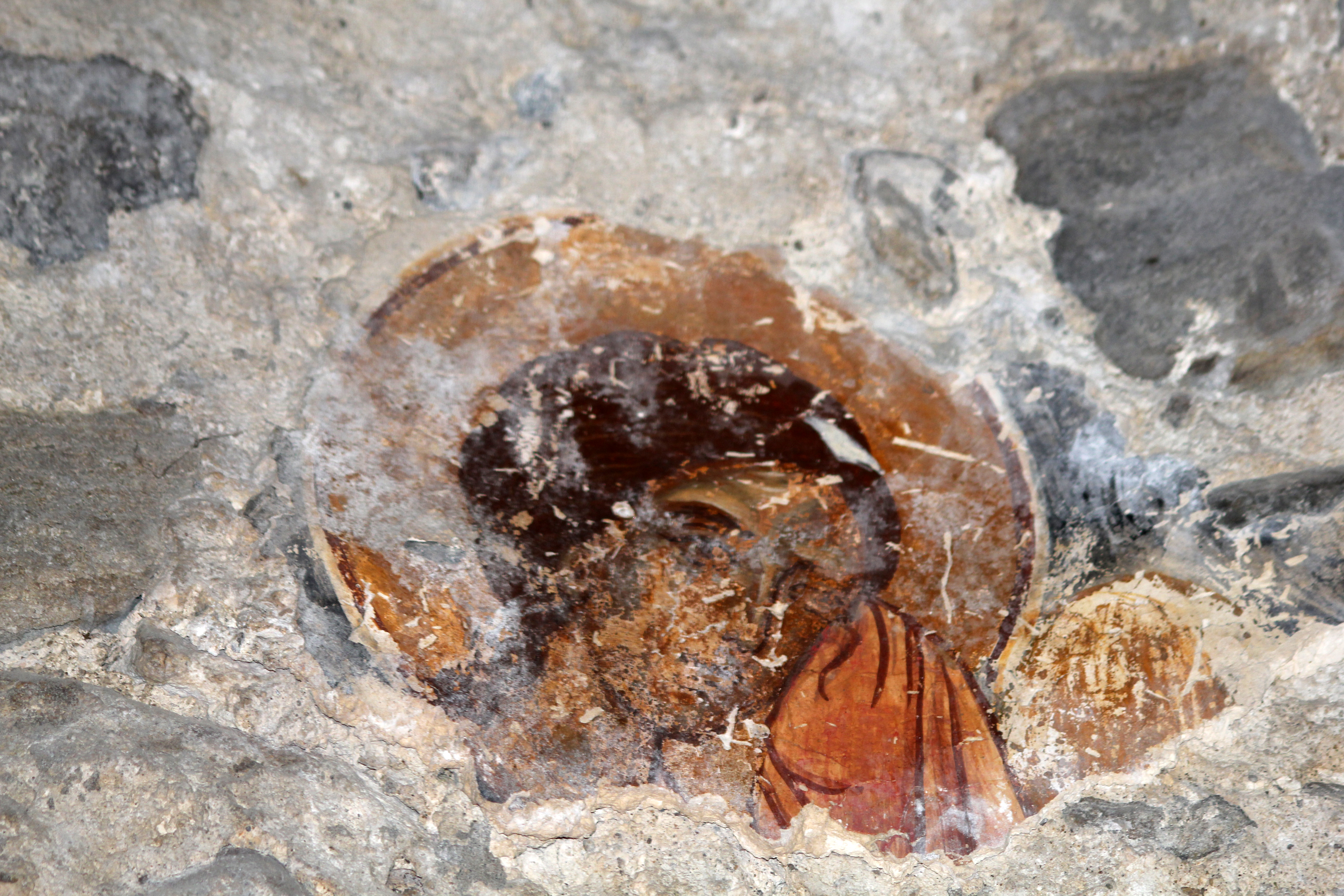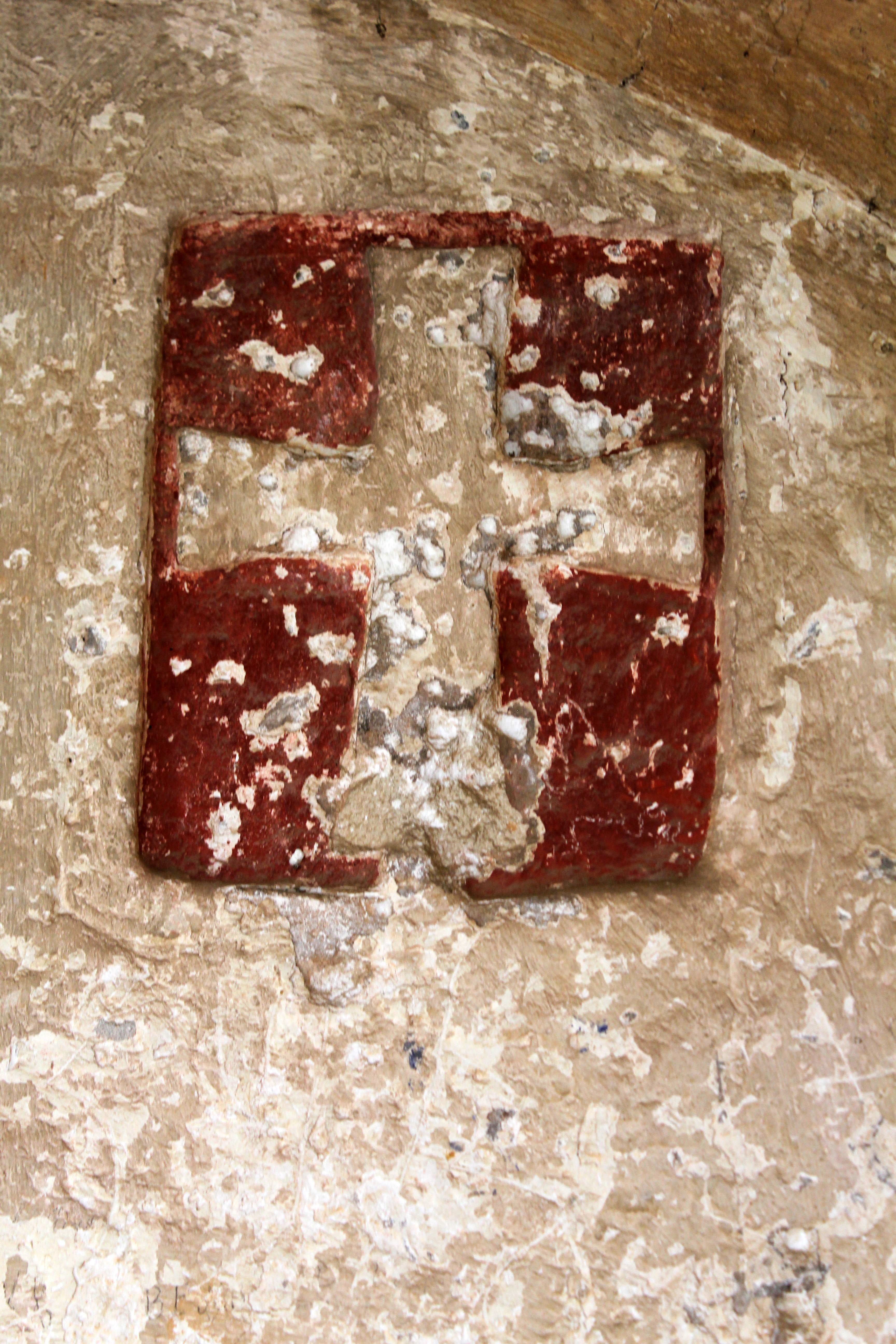 კორცხელის ღია გალერეაში აუცილებლად ყურადღებას მიიქცევს ყვავილების ნატიფი ორნამენტი და წითელ ფონზე ჯვრის სიმბოლო. ამ უკანასკნელთან დაკავშირებით ისტორიკოსთა ნაწილი მიიჩნევს, რომ ეს ერთ-ერთი ქართული დროშის სახეობაა, იმ დროშისა, რომელსაც სვეტიცხოვლის ფრესკაზე დიდი აფრებიანი გემის ანძაზე ვხედავთ. ევროპული წყაროების ცნობით: “ქართველთა მეფის დროშა ჩვეულებრივზე უფრო მდიდარია და ლამაზი. ის გაკეთებულია ოთხი განის თხელი წითელი ქსოვილისაგან, ოქროთი მდიდრულად მორთული ულამაზესი ჯვრით”.