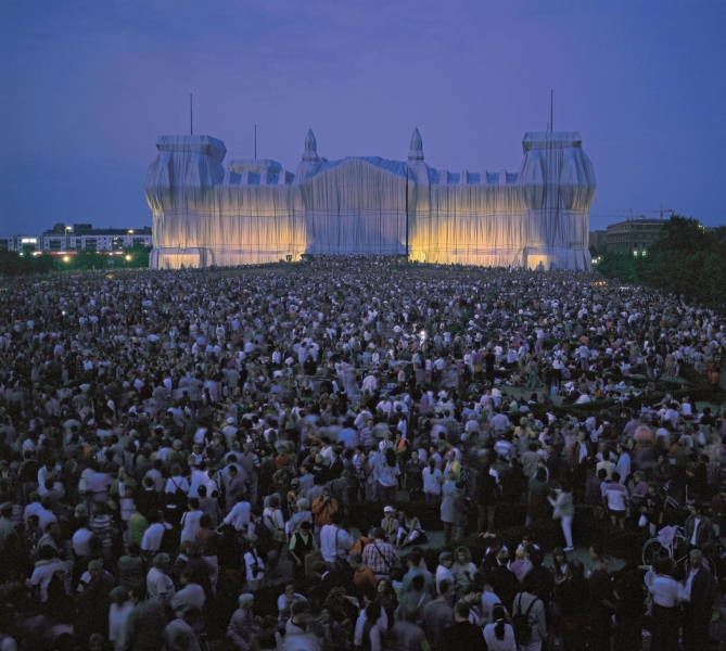 1995 წლის ზაფხულში, ორი კვირის განმავლობაში, რაიხსტაგი ასი ათასი კვადრატული მეტრის მოვერცხლისფრო-მონაცრისფრო ქსოვილით შეიფუთა. თუმცა პროექტს მრავალი მოწინააღმდეგე საზოგადოებაშიც ჰყავდა, მის სანახავად ბერლინში უამრავი ადამიანი ჩავიდა. შეფუთვიდან მალევე სამმა ტენორმა – ლუჩიანო პავაროტიმ, ხოსე კარერესმა და პლაჩიდო დომინგომ – სურვილი გამოთქვა, რომ შეფუთული რაიხსტაგის ფონზე კონცერტი ჩაეტარებინათ, მაგრამ ხრისტომ მომღერლები უარით გაისტუმრა, მით უმეტეს, რომ წინდახედული ცოლ-ქმარი ყოველთვის ქირაობდნენ ხოლმე ტერიტორიას – ნამუშევრებიდან ერთი კილომეტრის რადიუსს – რათა არავის შესძლებოდა მათი პროექტების კომერციული მიზნით გამოყენება.