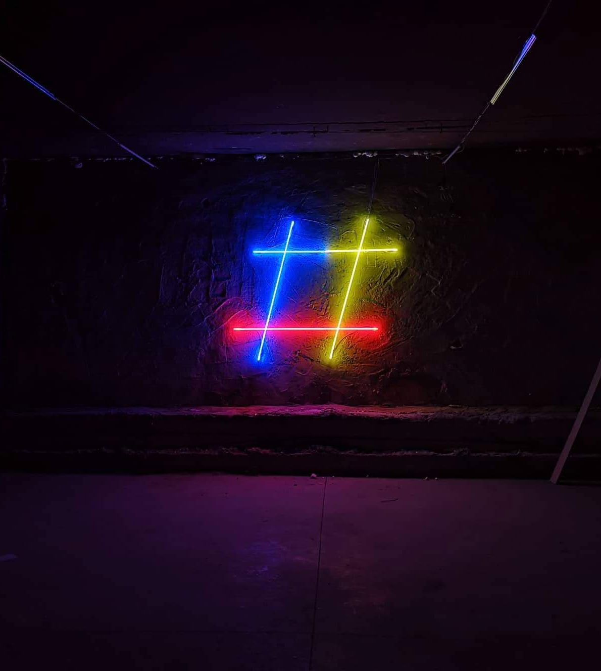 + – + (Secondary color mixing) (2018) Material : Neon. Size: 150x150cm.