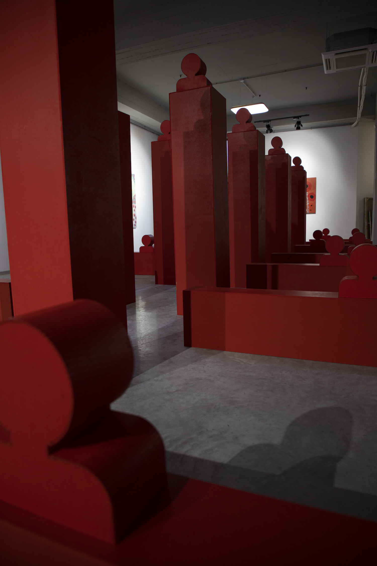 საგამოფენო მედიუმი წარმოადგენს ინსტალაციას ინტეგრირებული ფერწერული ტილოებისაგან. წითელი ფერის სიმბოლიკით არტისტი თითქოს ხაზს უსვამს და გვაფრთხილებს საშიშროების შესახებ, რომელიც შეიძლება წარმოშვას კულტურისგან დაცლილმა სივრცეებმა. წითელი ფერი აქტიურად გამოიყენება ხელოვნებაში, როგორც საფრთხის ნიშანი, თუმცა ეს ფერი, ამავდროულად, არ არის უცხო, ადამიანური ფორმისთვის. ვინაიდან ჩვენს ძარღვებში მიმდინარე სისხლი სწორედ წითელია, ის ერთდროულად ხდება უცხოც და ნაცნობიც. ეს ფერი აღძრავს საშიშროების მოლოდინსა  და სიმძაფრეს. ადამიანების ბავშვობის პირვანდელი ტრამვები, სწორედ ამ უკანასკნელს უკავშირდება, ჩვენი პირველი ჭრილობის ან დაზიანების დროს. სწორედ ამიტომ არის ის ასე მძაფრი და ერთდროულად ნაცნობი კაცობრიობისთვის.