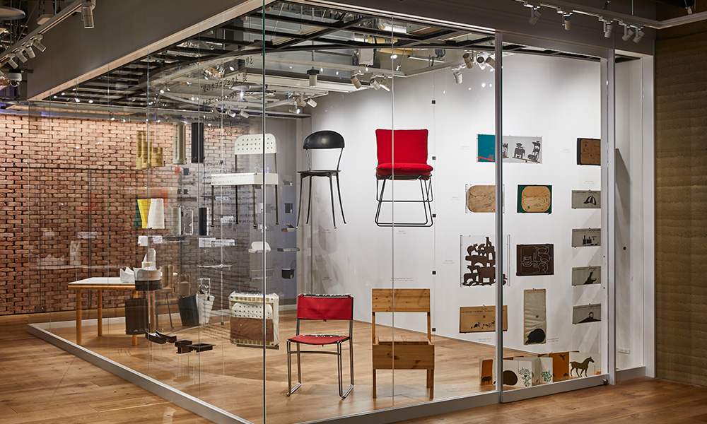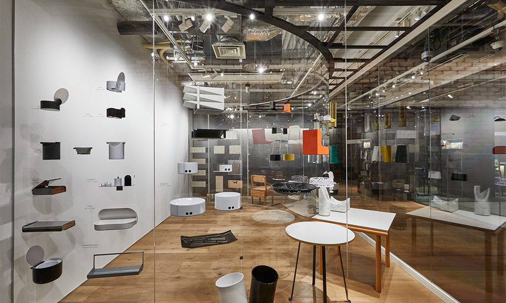 Sumatra document holder Danese Milano-სთვის 1976 წელს შექმნილი საქაღალდე და სკამი Delfina chair, რომელიც 1974 წელს შექმნა ავეჯის კომპანია Driade-სთვის