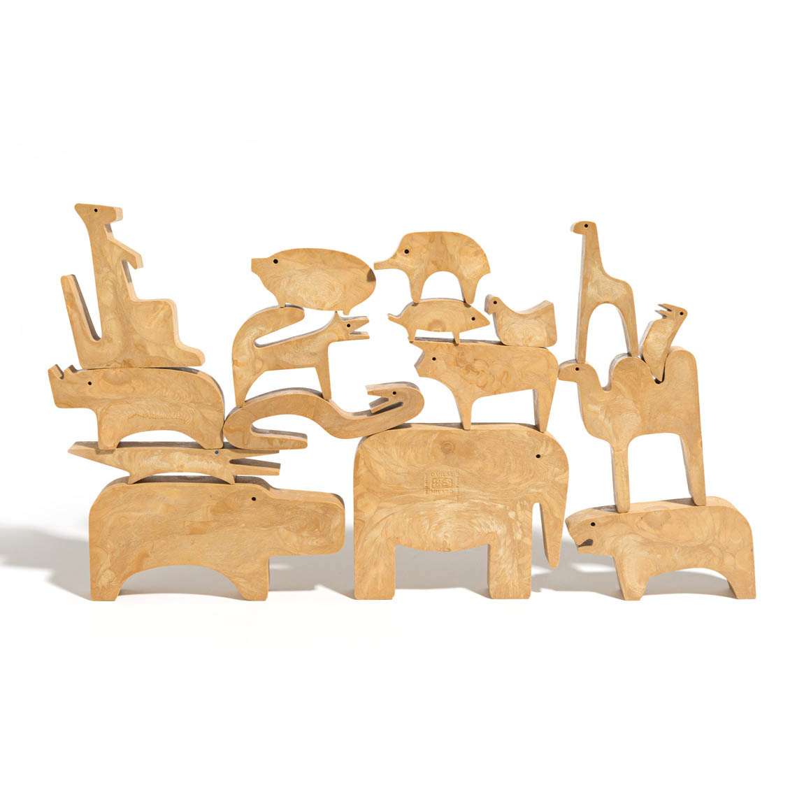16 ცხოველის ფორმისგან შემდგარი ფაზლი, რომელიც დიზაინერის ძალიან ცნობილი ნამუშევარია, 16 სხვადასხვა ცხოველის ფორმის ფიგურებისგან შედგება, რომელიც ერთი უწყვეტი ხაზით არის ამოჭრილი ხის დაფისგან.