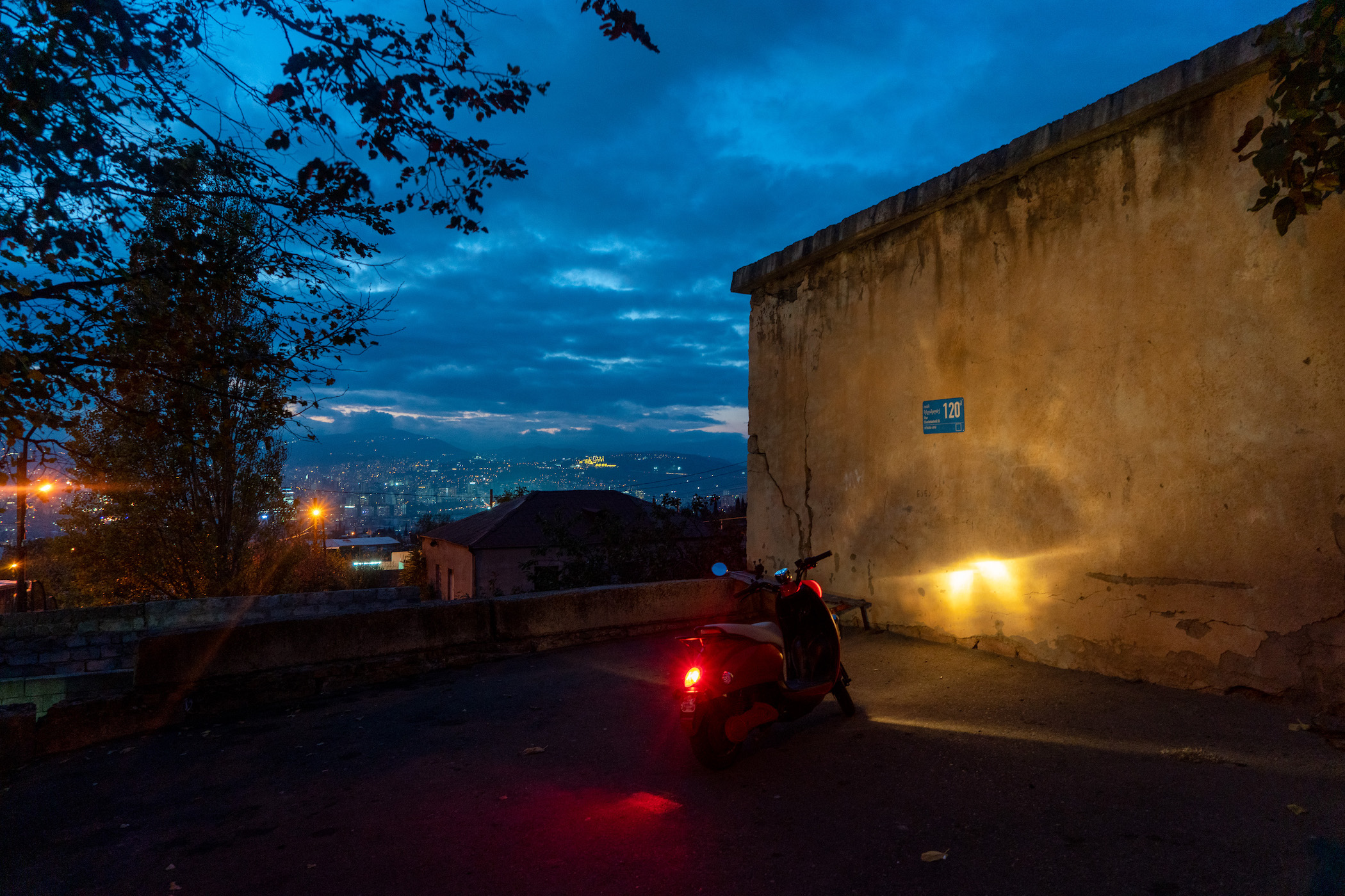 მანქანით სიარული მაგარი არაკომფორტულია. რამე მოგეწონება, უნდა გააჩერო, გადმოხვიდე, გადაიღო, ჩაჯდე და ა.შ. სანამ დაპარკინგდები, იქამდე შეიძლება ობიექტი გაგექცეს. ან შეიძლება მანქანის ფანჯრიანი ჩარჩო გქონდეს ფოტოზე. ერთი სიტყვით, მანქანას ვუთხრათ სამი არა და გადავჯდეთ მოპედზე. მოპედიდან შეგიძლია ეგრევე ჯიბიდან გაისროლო, არც პარკინგზე გაწვალებს.