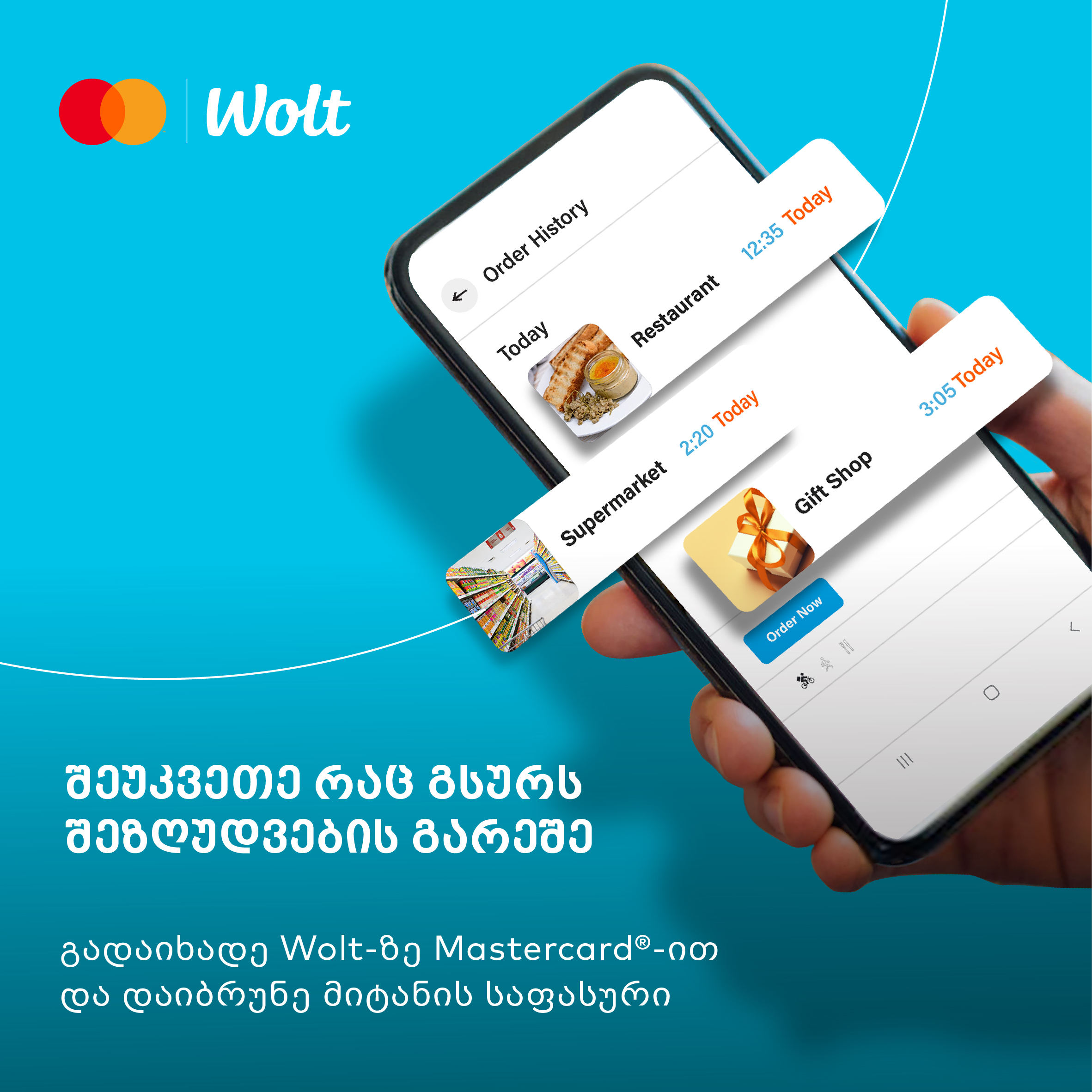 Mastercard და Wolt მომხმარებელს უფასო მიტანის სერვისს სთავაზობს