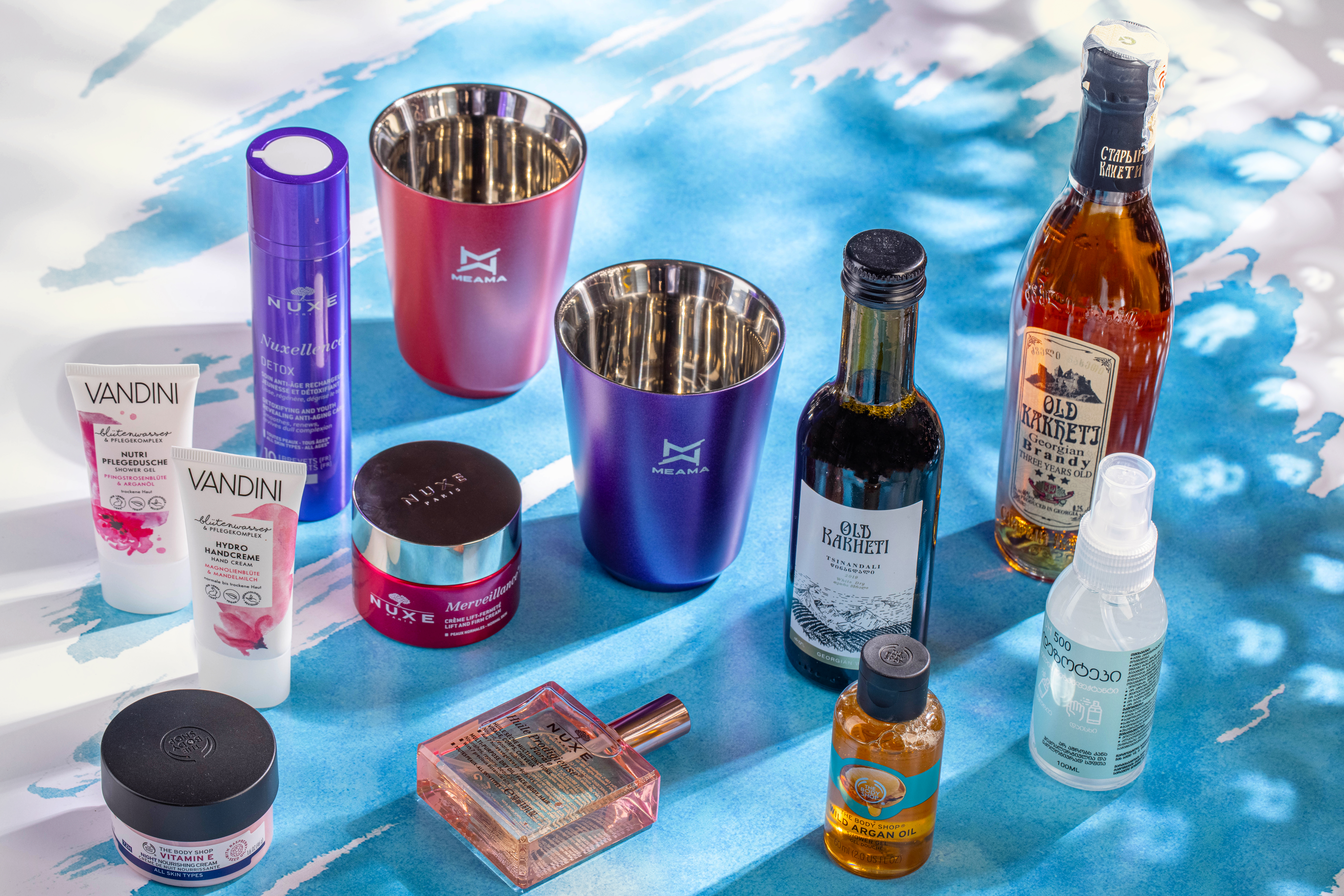 Tavel Box-ის სამოგზაურო ყუთში აღმოვაჩინე 5-ვარსკვლავიანი სასტუმროს ვაუჩერი 2 ღამით 2 ადამიანზე, პარტნიორი კომპანიების საჩუქრები, რომლებიც ნებისმიერი მოგზაურობის განუყოფელი ნაწილი უნდა იყოს.  პირბადე, სამოგზაურო წიგნაკი, კალამი, სტიკერები, „ნუქსის“, „ბოდი შოპის“, „ვანდინის“, “ალკმენეს“ ბრენდების პროდუქცია კომპანია “გეფასგან” , სადეზინფექციო საშუალება “დეზოტეკი”, “მეამას” ბრენდის ყავის ჭიქა და ბოლოს კი, “კახური ტრადიციული მეღვინეობის” მიერ წარმოებული კონიაკი და ღვინო.